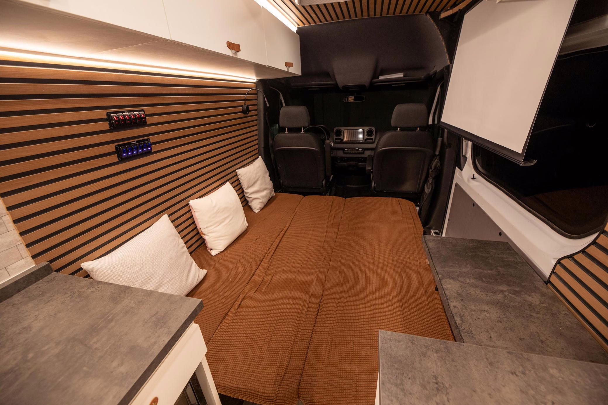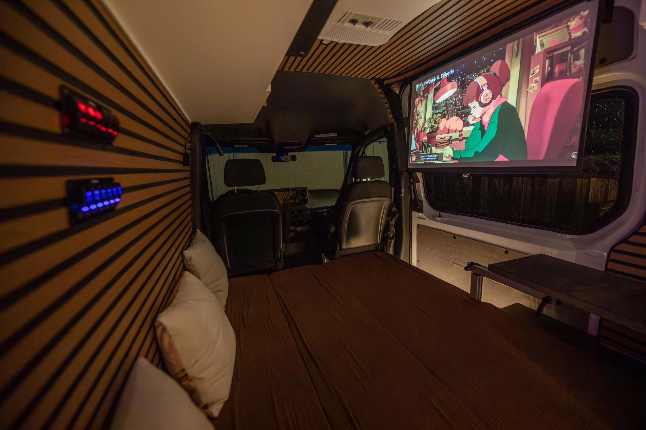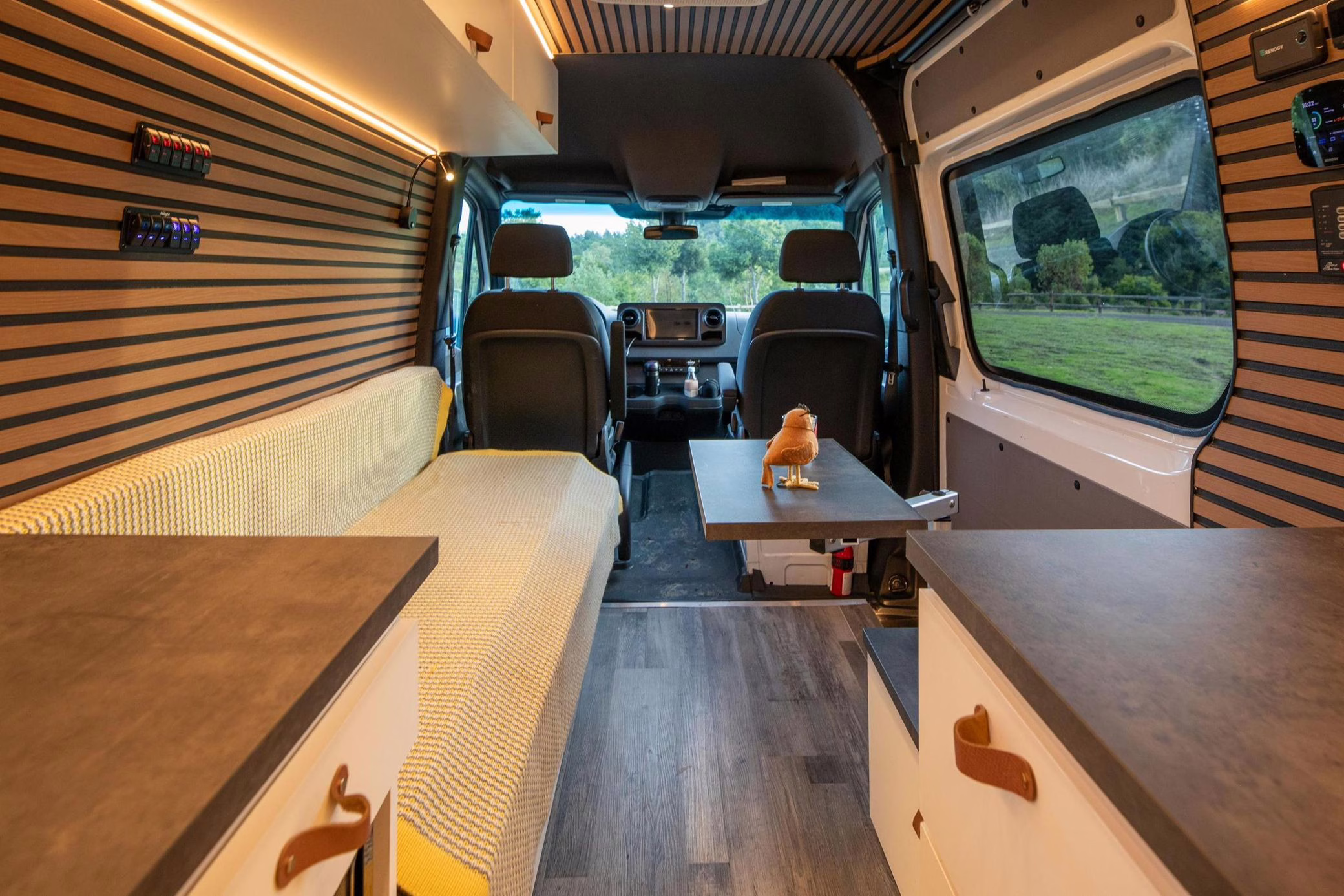 The Mercedes-Benz Sprinter is a hugely popular platform for all manner of conversions, and this one looks like it could really be a home away from home! It touts a long list of modifications that will enable the next owner to live pretty comfortably, like three 100W solar panels, a Renogy 3000W inverter, a Dometic rooftop air conditioning unit, a 5kW diesel heater, a 45-liter refrigerator with freezer, a 33-gallon clean water tank, a sink with foldable faucet, and a shower with heated floor. It also features a luxurious living area with a 50-inch ceiling-mounted projector screen, a large foldable sofa bed, a Lagun adjustable table, wood-paneled walls and ceiling, and plenty of cabinet and counter space.