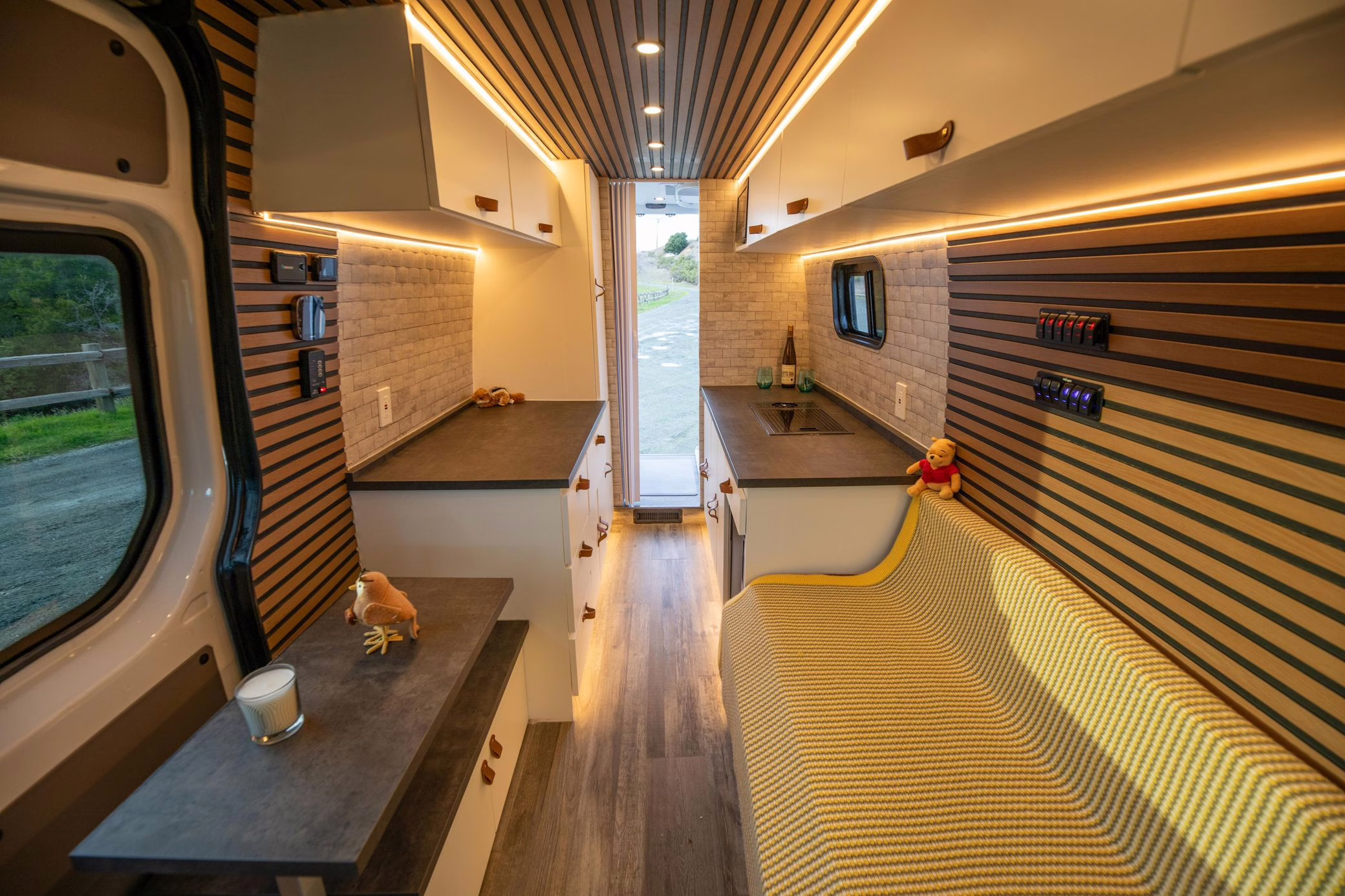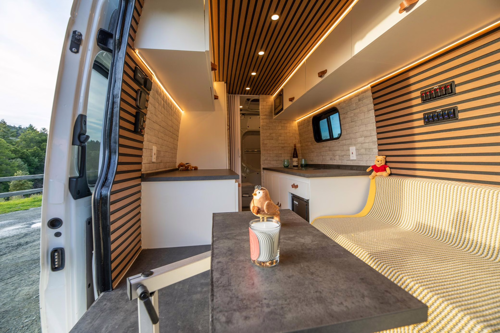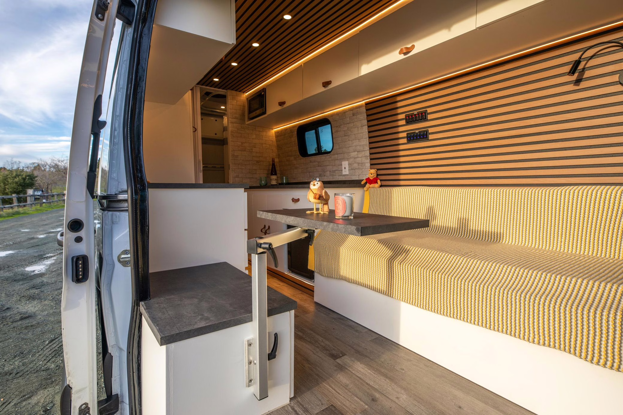 The Mercedes-Benz Sprinter is a hugely popular platform for all manner of conversions, and this one looks like it could really be a home away from home! It touts a long list of modifications that will enable the next owner to live pretty comfortably, like three 100W solar panels, a Renogy 3000W inverter, a Dometic rooftop air conditioning unit, a 5kW diesel heater, a 45-liter refrigerator with freezer, a 33-gallon clean water tank, a sink with foldable faucet, and a shower with heated floor. It also features a luxurious living area with a 50-inch ceiling-mounted projector screen, a large foldable sofa bed, a Lagun adjustable table, wood-paneled walls and ceiling, and plenty of cabinet and counter space.