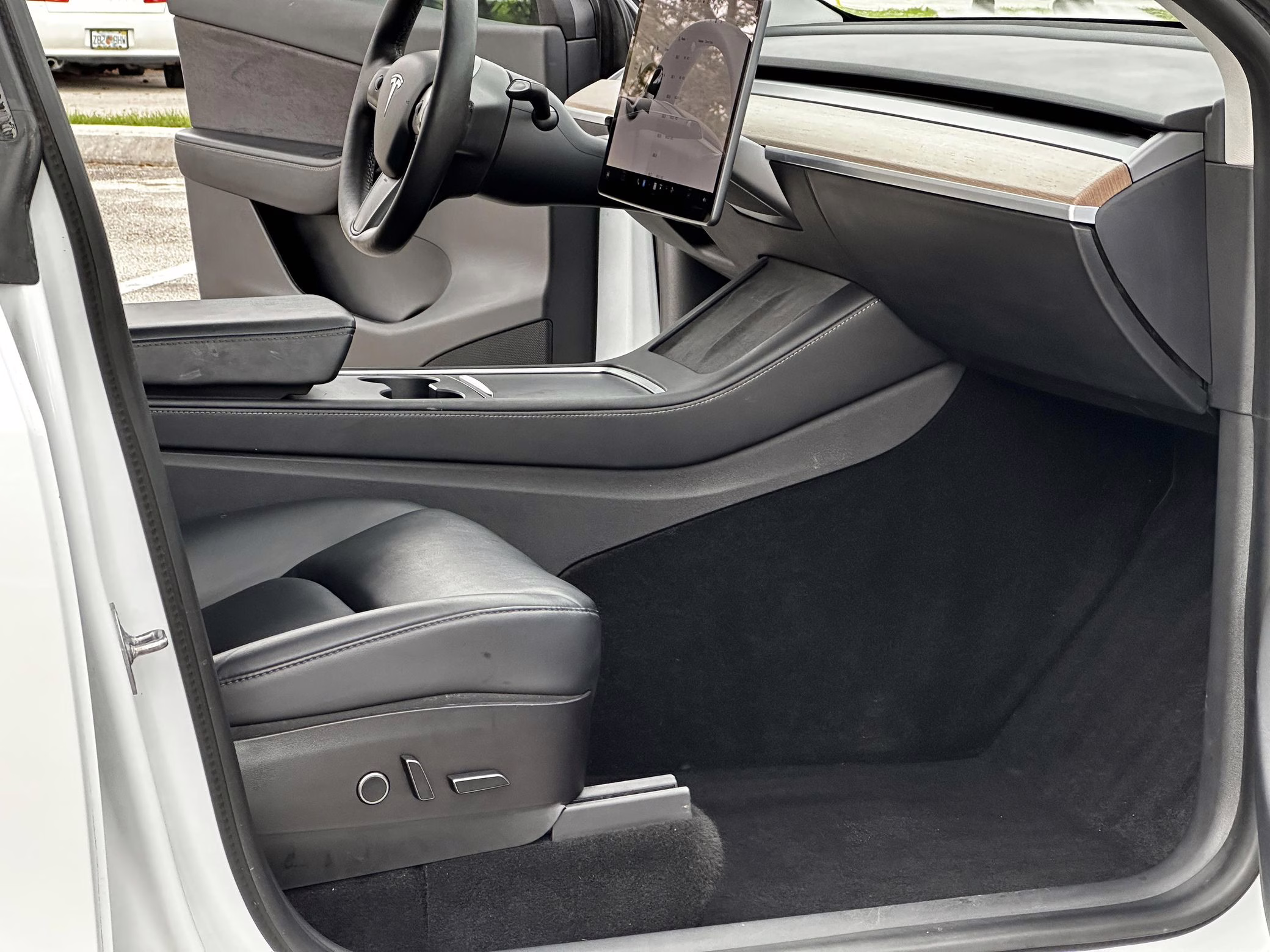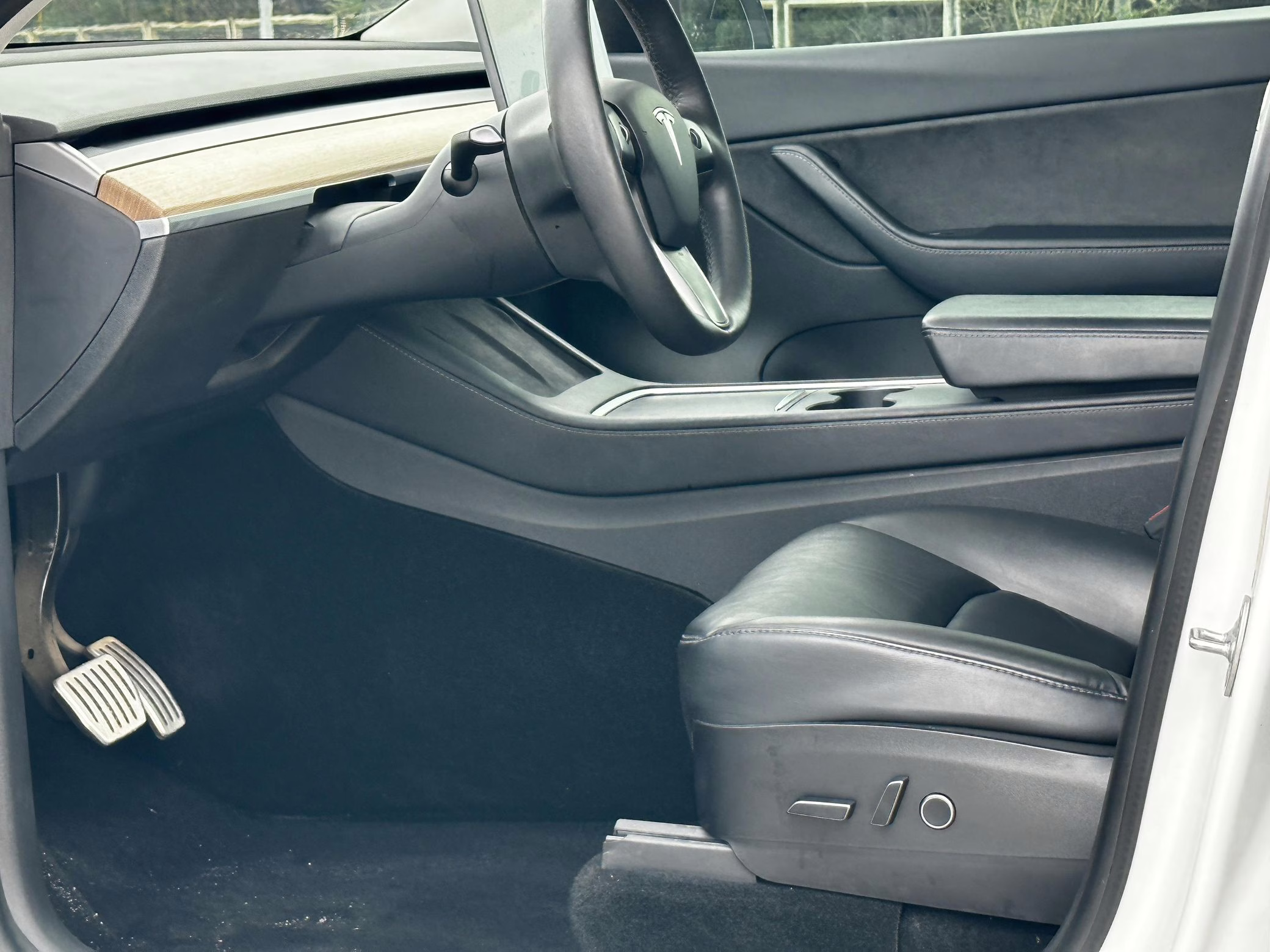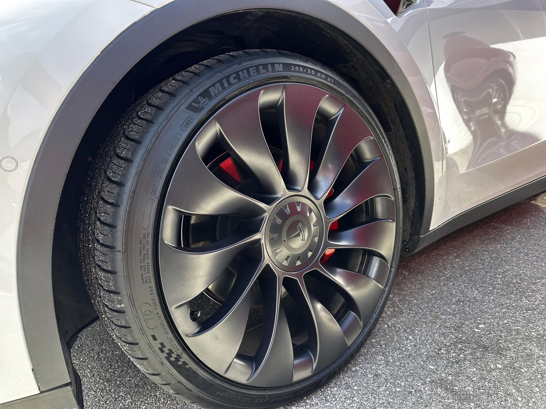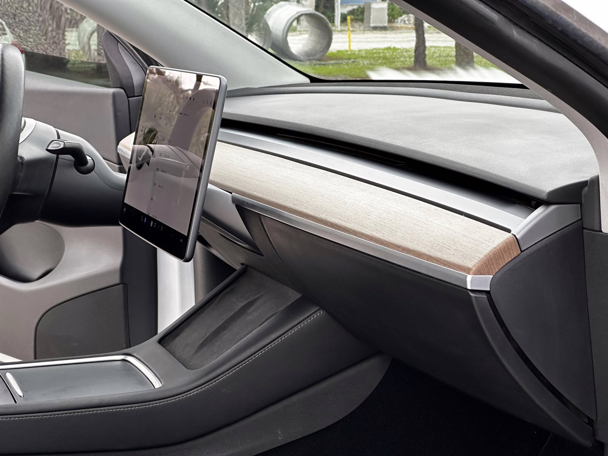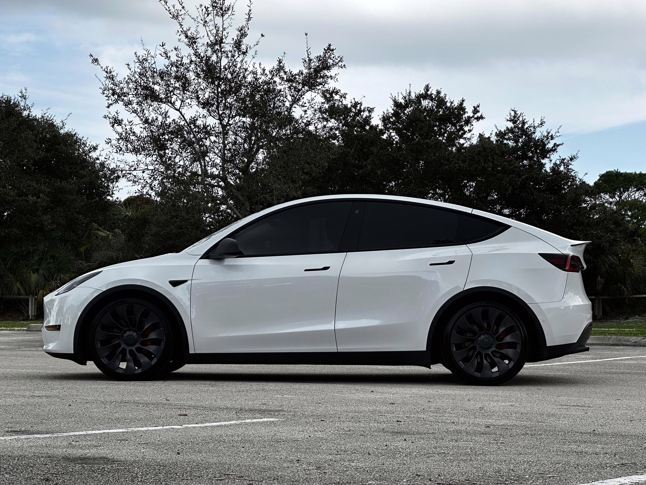 Factory equipment includes 21-inch “Überturbine” wheels, a Performance-specific braking system, a Performance-specific lowered suspension system, a panoramic glass roof, a 15-inch touchscreen for the infotainment system, a premium sound system, Autopilot technology, and the Full Self-Driving computer. The selling dealer reports that modifications are limited to tinted windows and the removal of the front and rear emblems.
