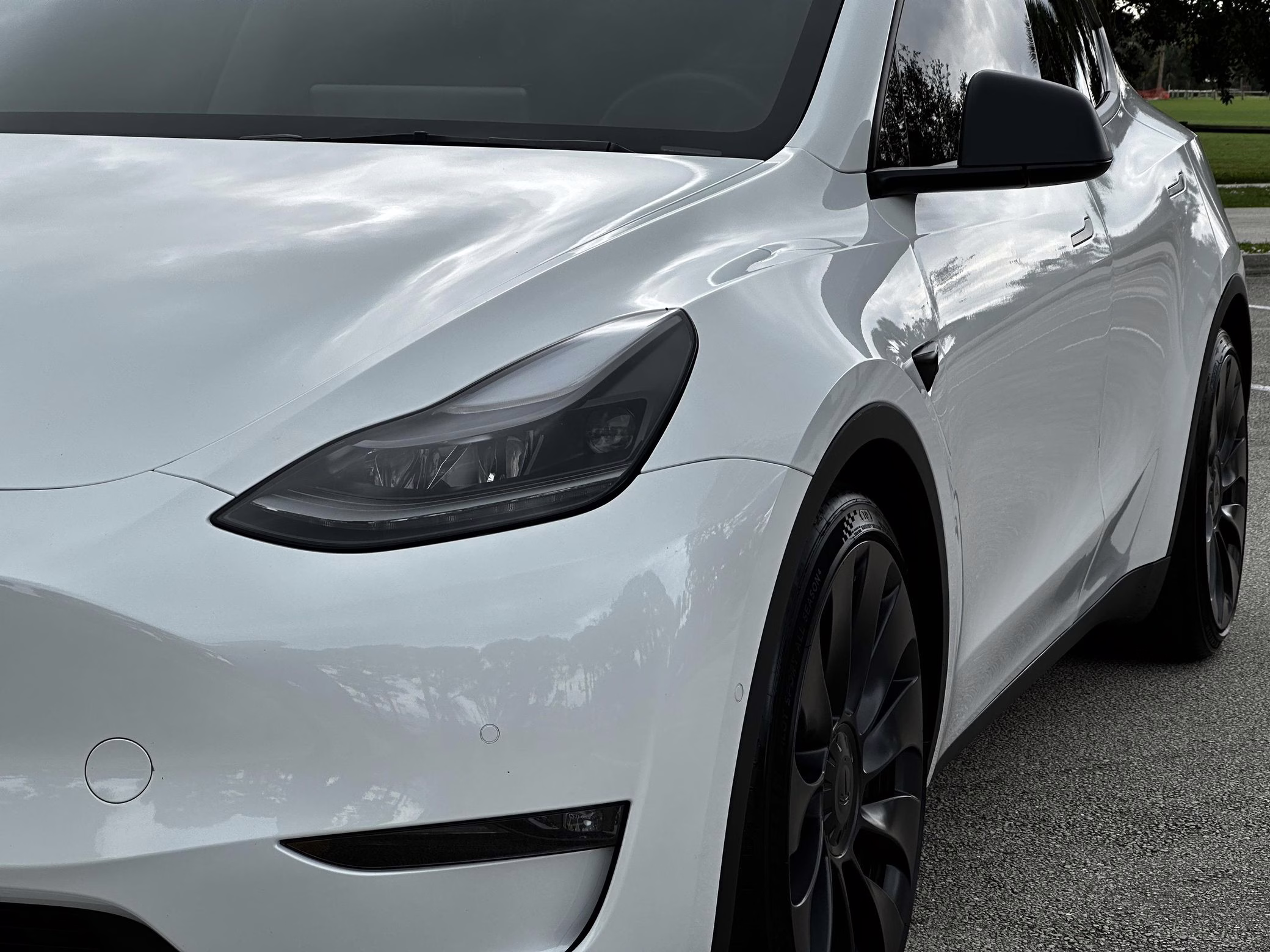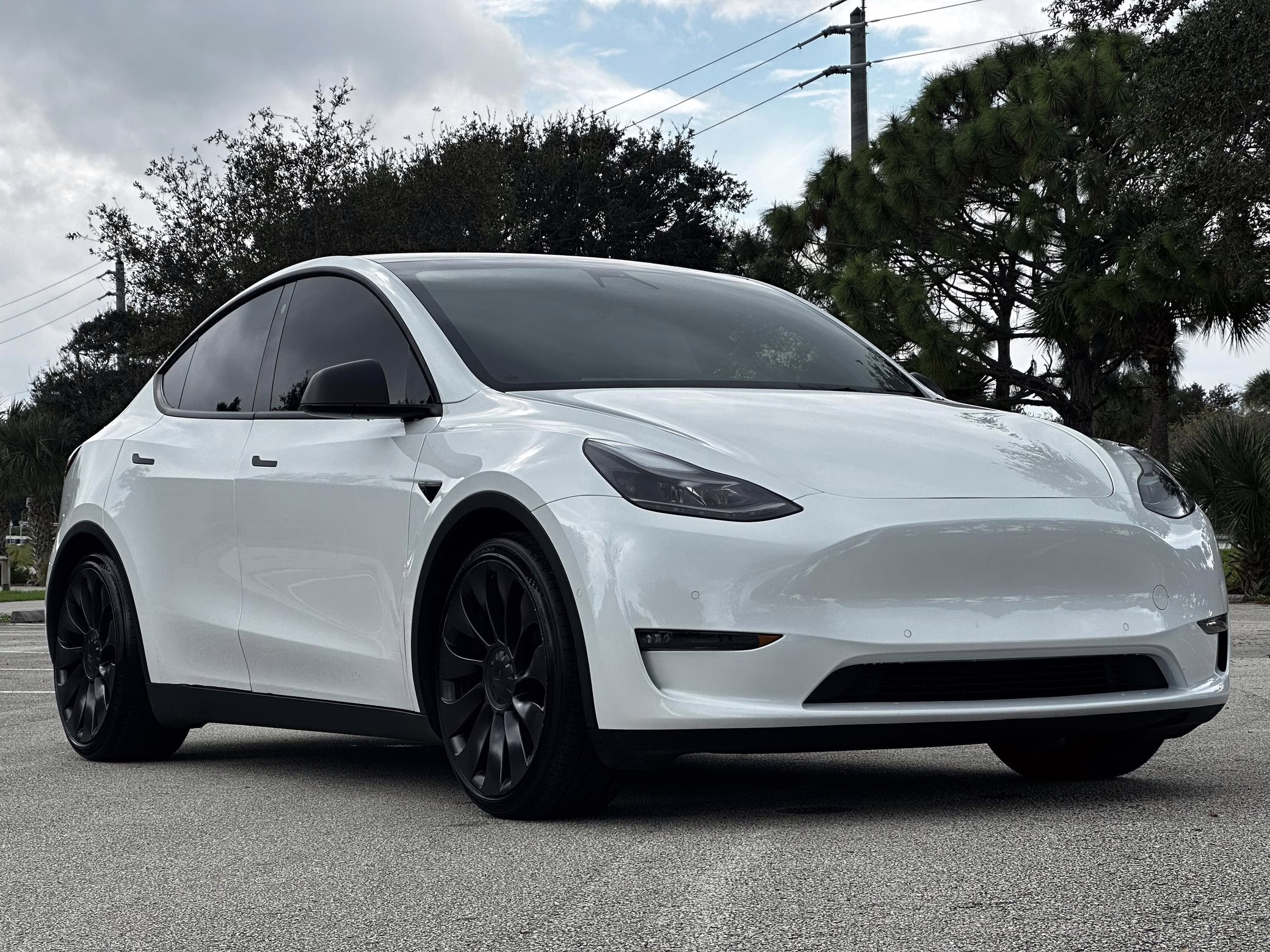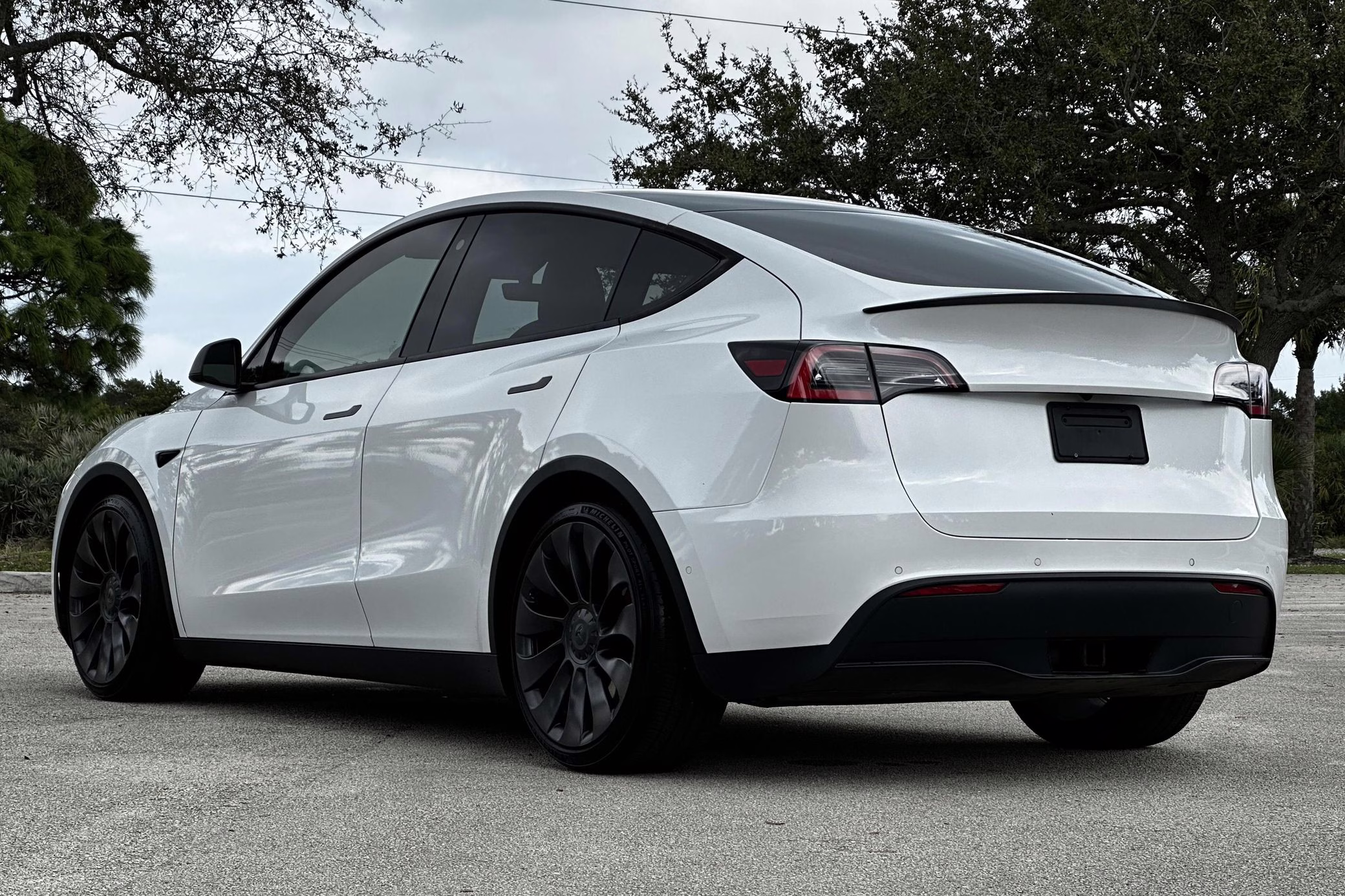 2021 Tesla Model Y Performance, finished in Pearl White with a black interior.
