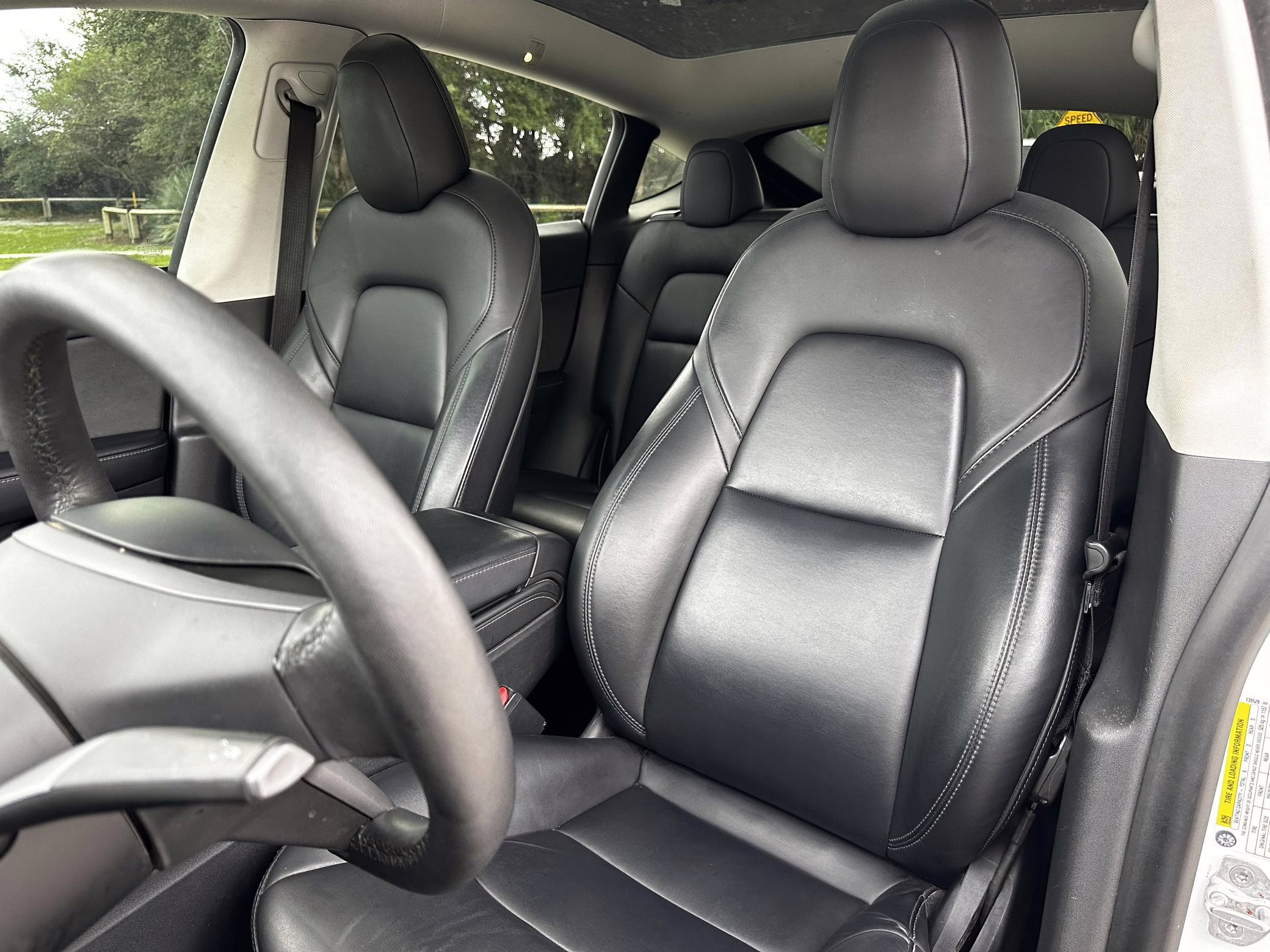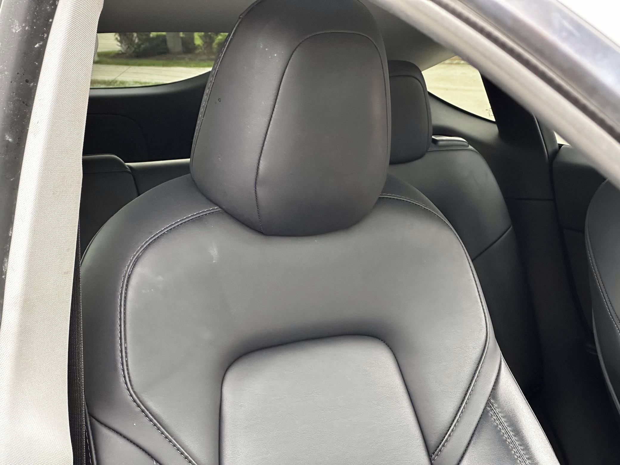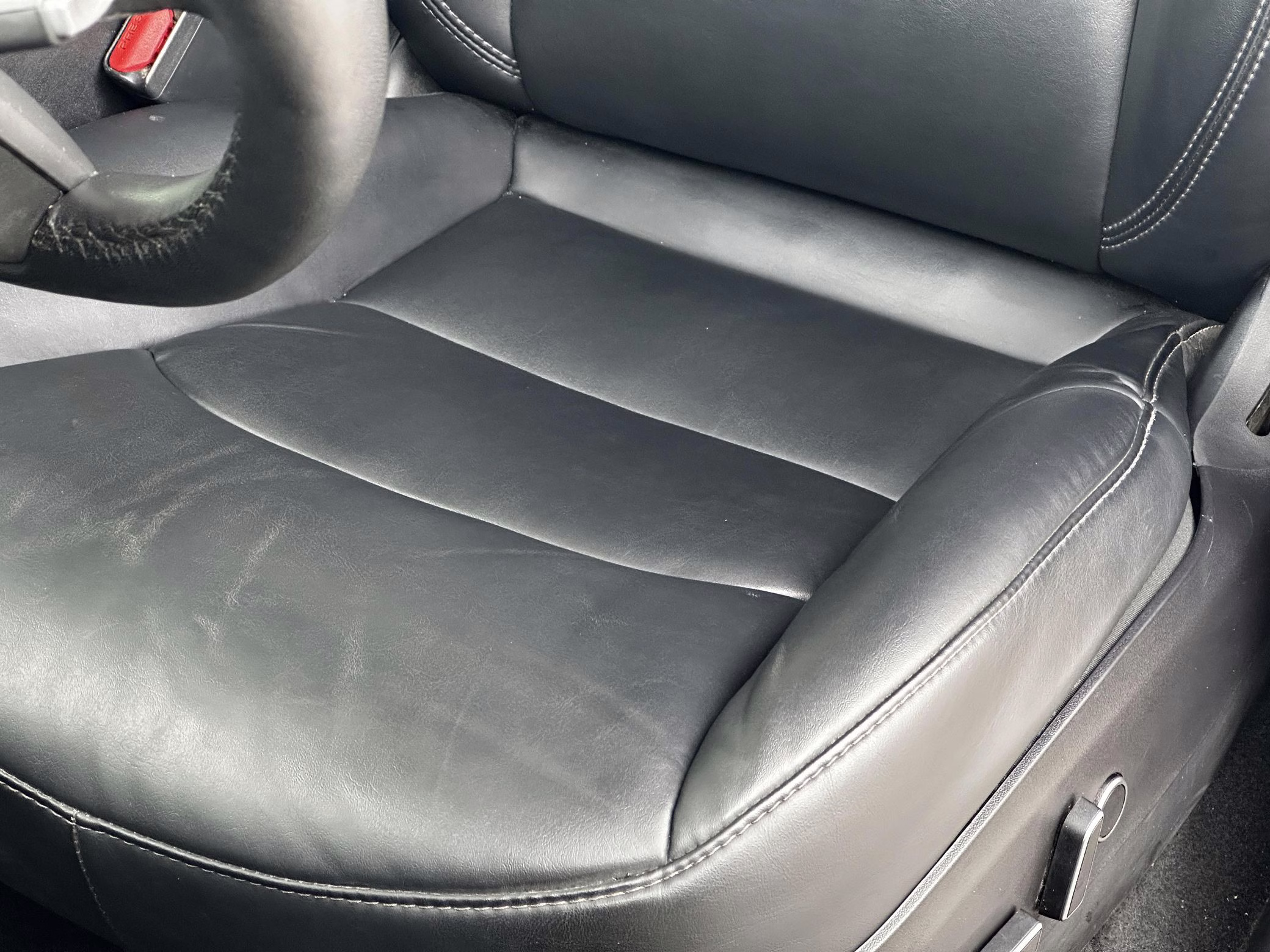Some wear on driver’s seat and some creases on passenger-side front seat