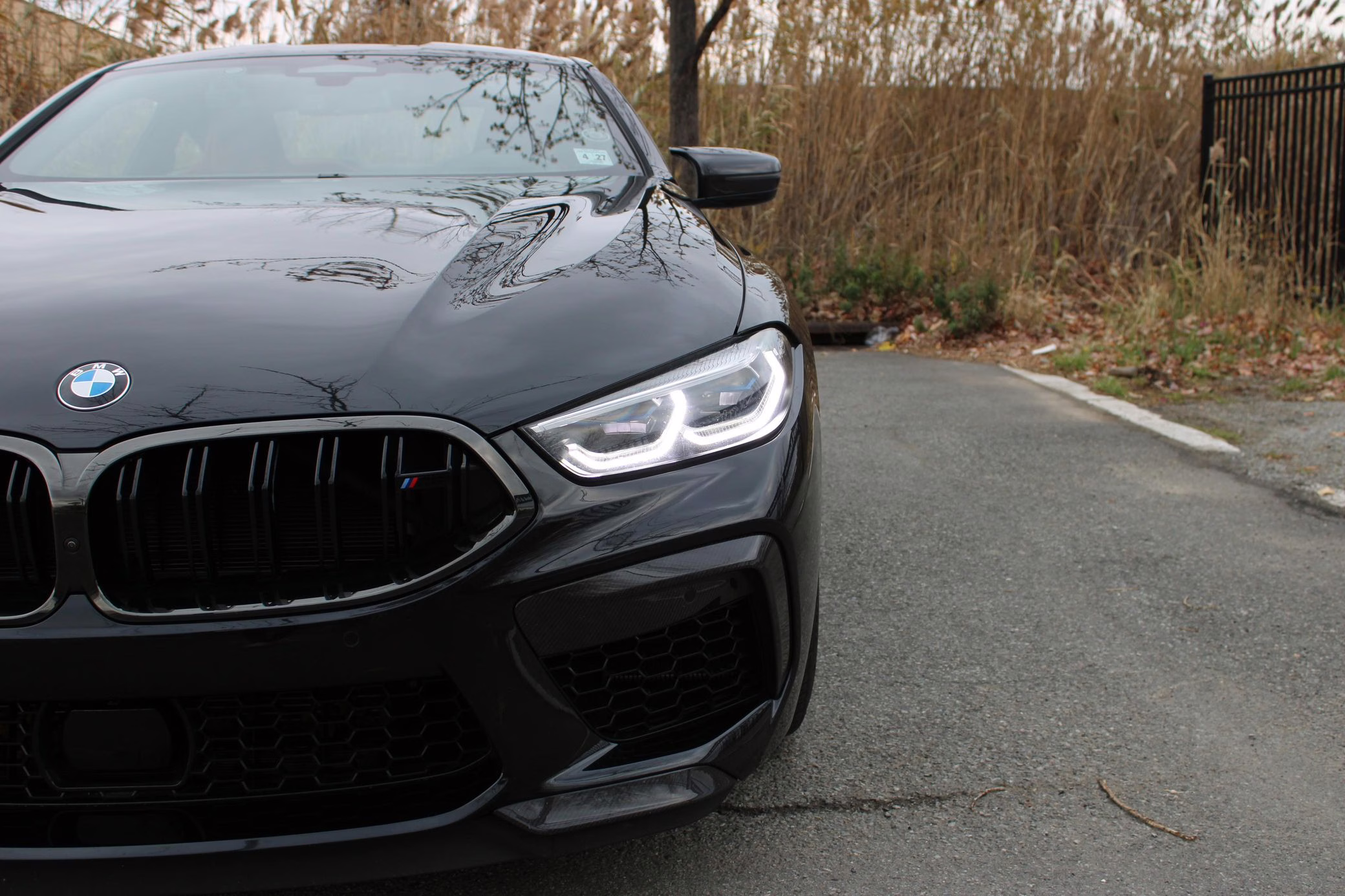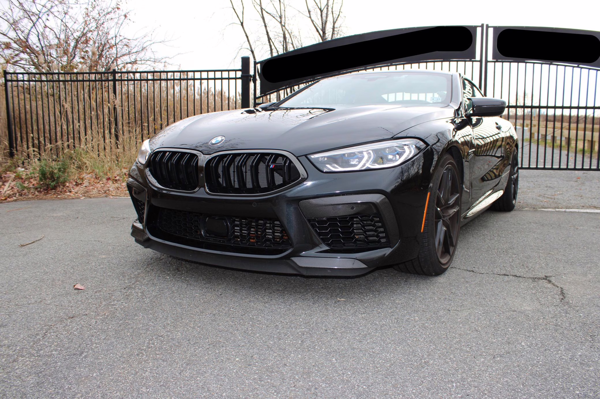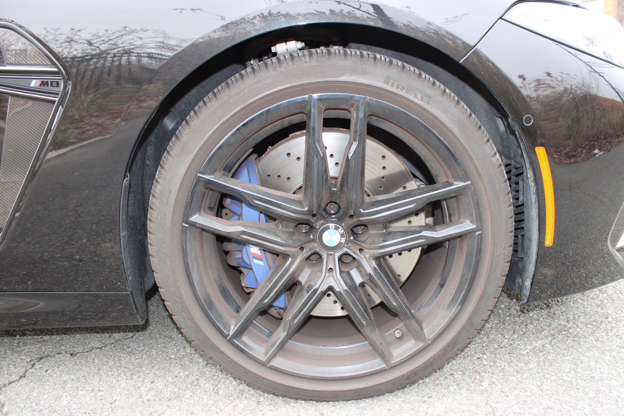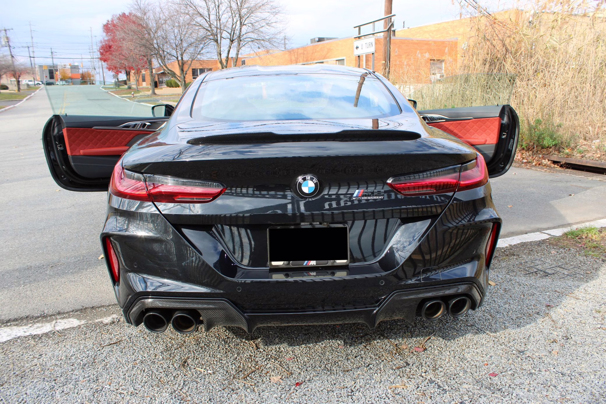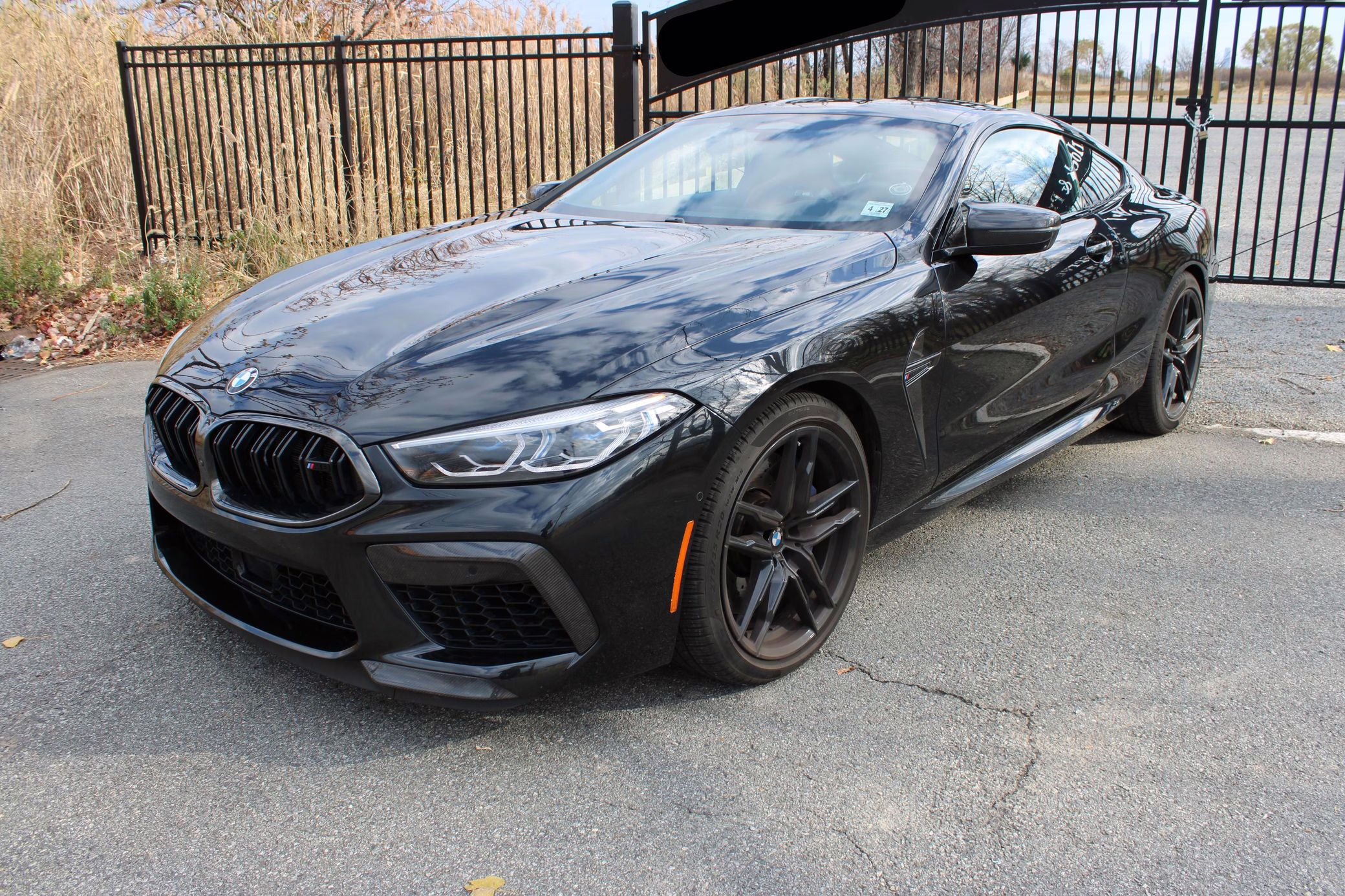 2022 BMW M8 Competition Coupe, finished in Black Sapphire Metallic with a Sakhir Orange and black interior.