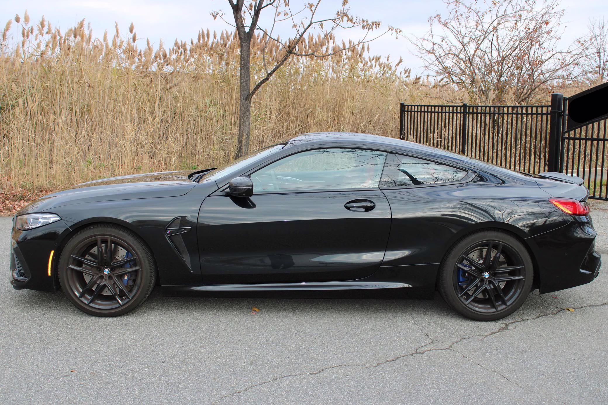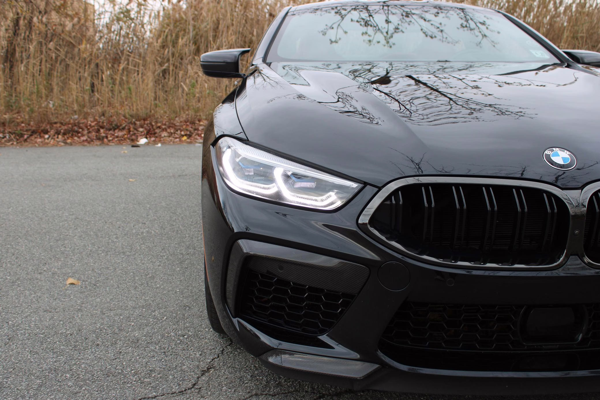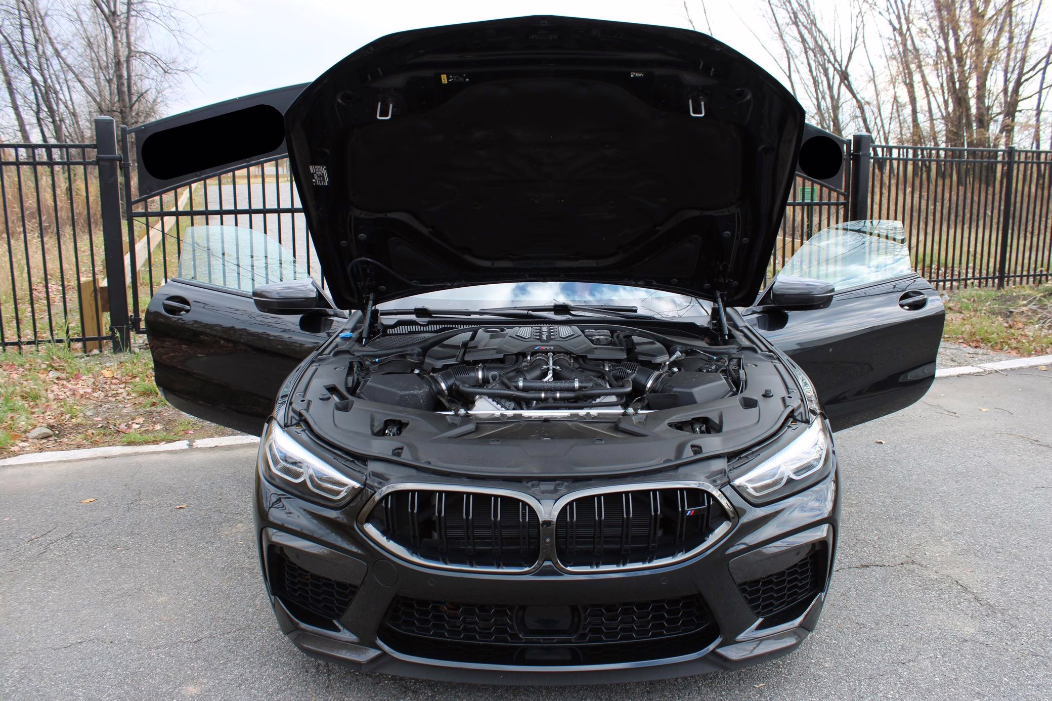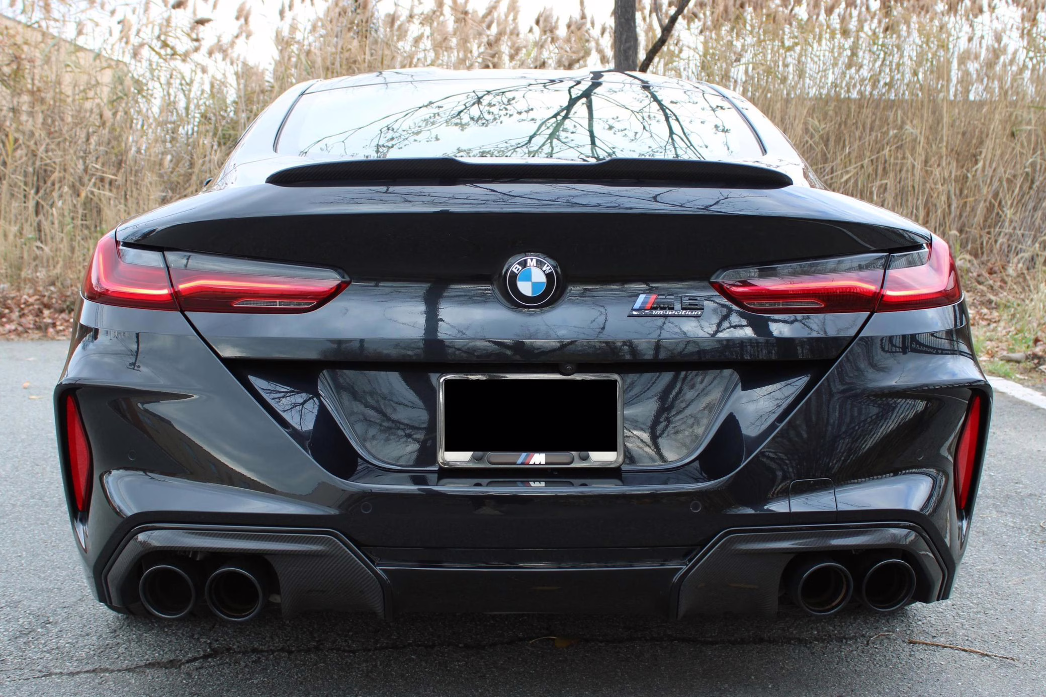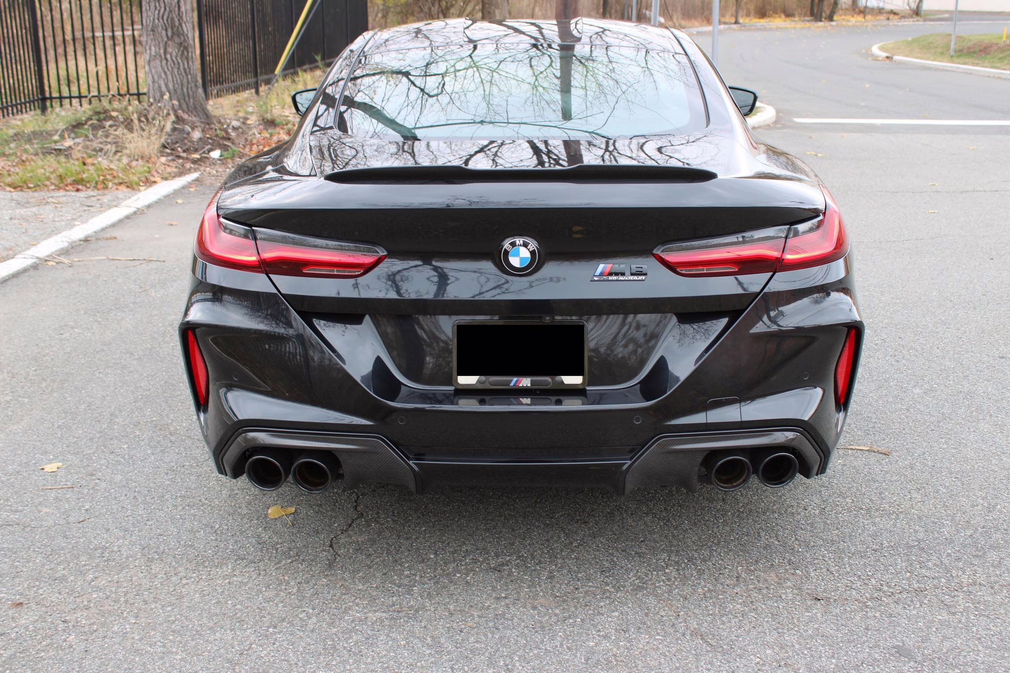 2022 BMW M8 Competition Coupe, finished in Black Sapphire Metallic with a Sakhir Orange and black interior.
