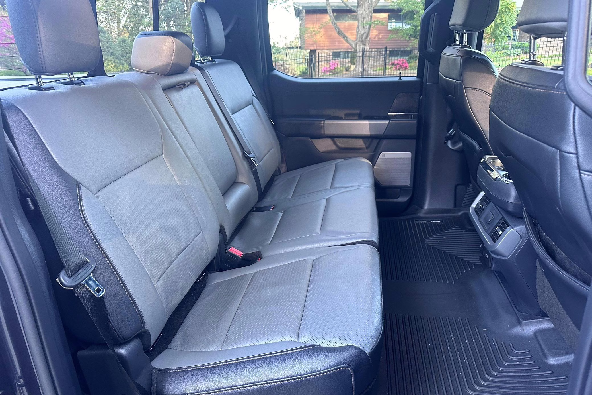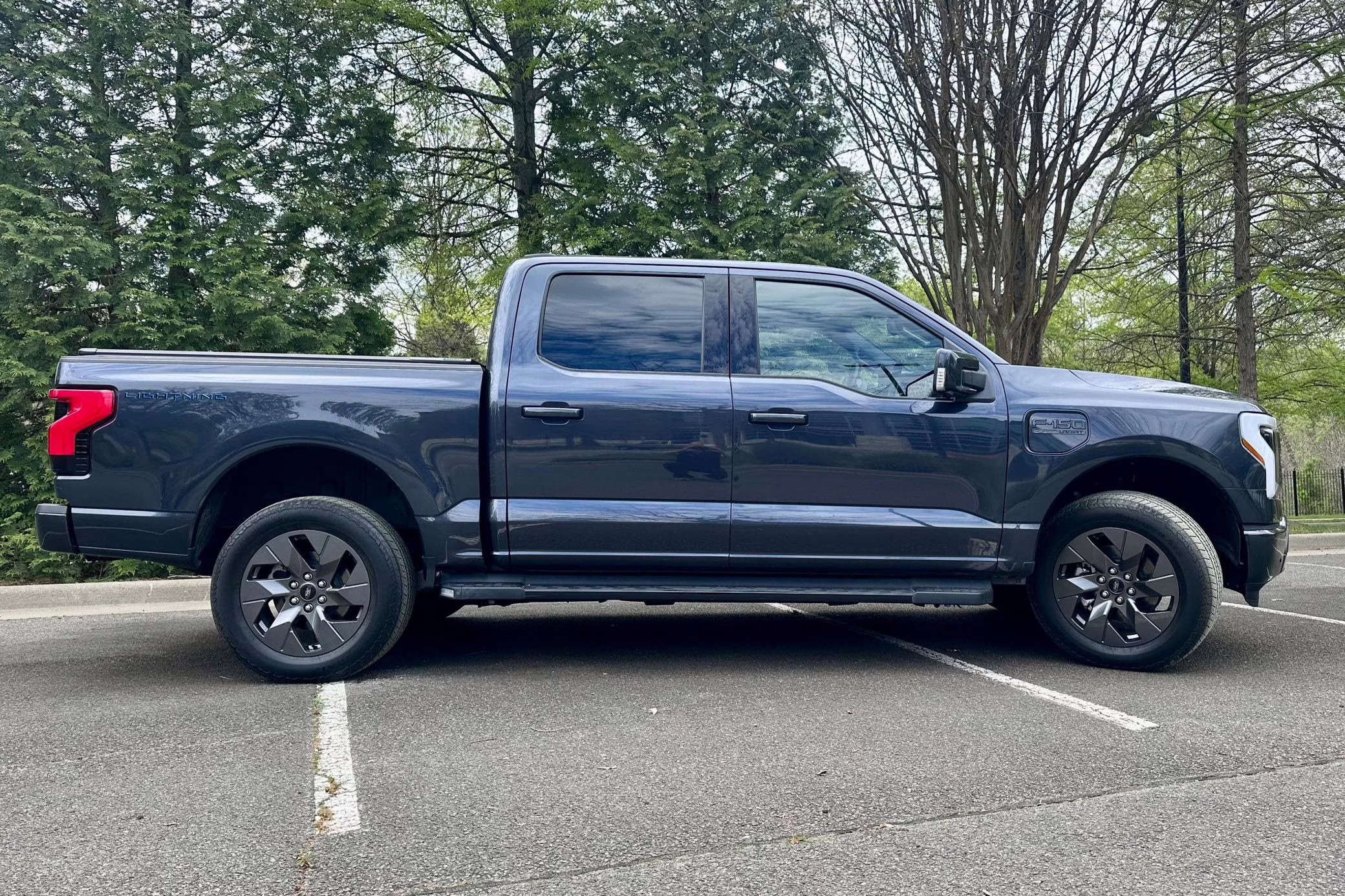 Power comes from a pair of electric motors (one per axle), which draw electricity from a 98-kilowatt-hour lithium-ion battery pack to zap all four wheels with 452 horsepower and 775 lb-ft of torque. The Lightning earned a maximum driving range of 230 miles from the EPA with the standard-range battery.