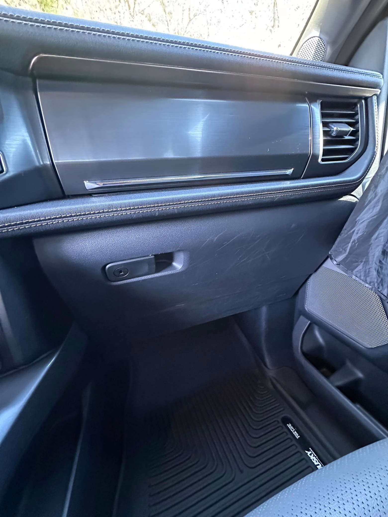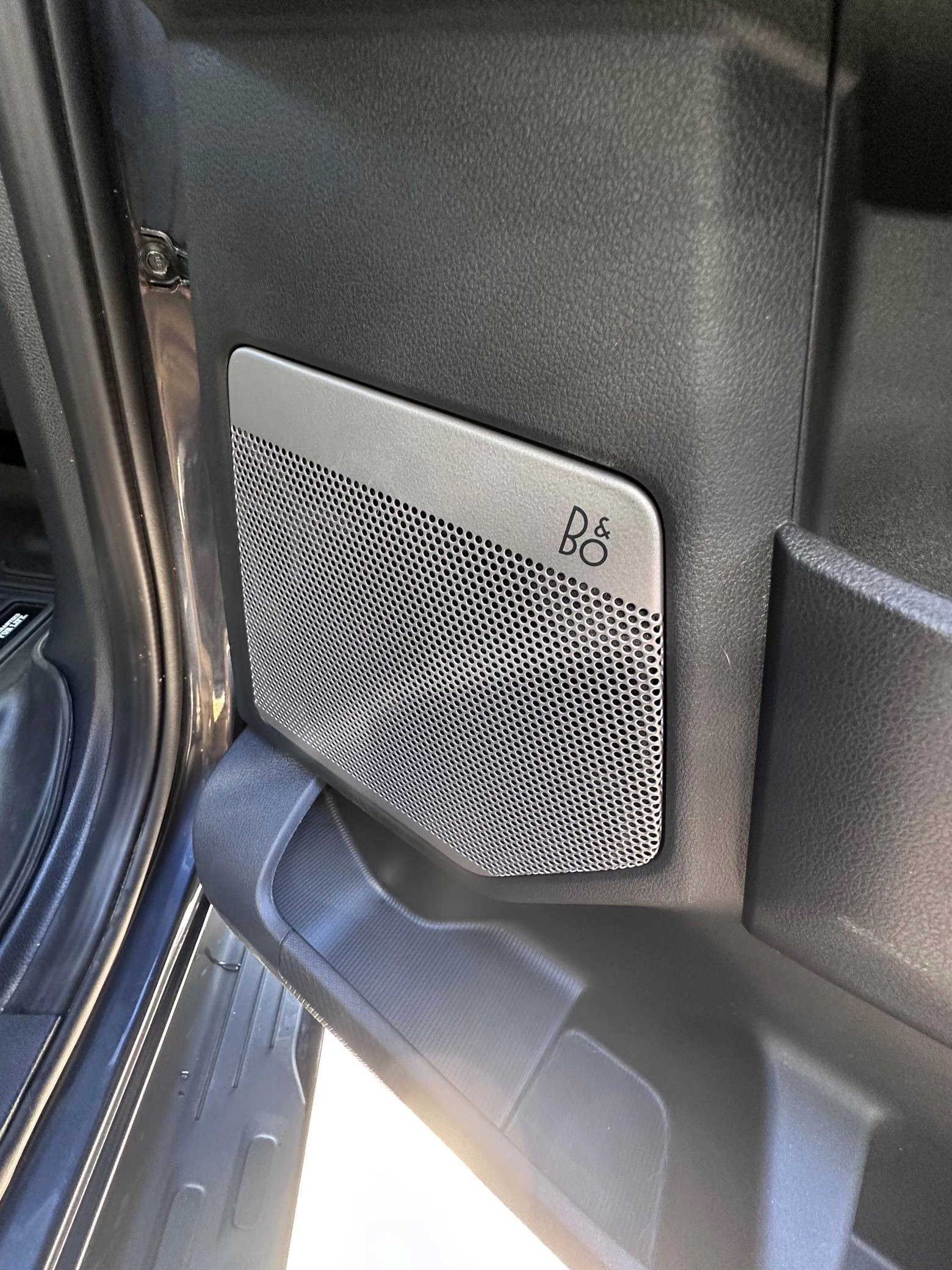 Factory equipment includes the Equipment Group 510A, 20-inch wheels, a trailer hitch, leather upholstery, heated, ventilated, and power-adjustable front seats, power-adjustable pedals, a 15.5-inch touchscreen with Apple/Android CarPlay compatibility, an 8-speaker Bang & Olufsen sound system, and a 360-degree camera.