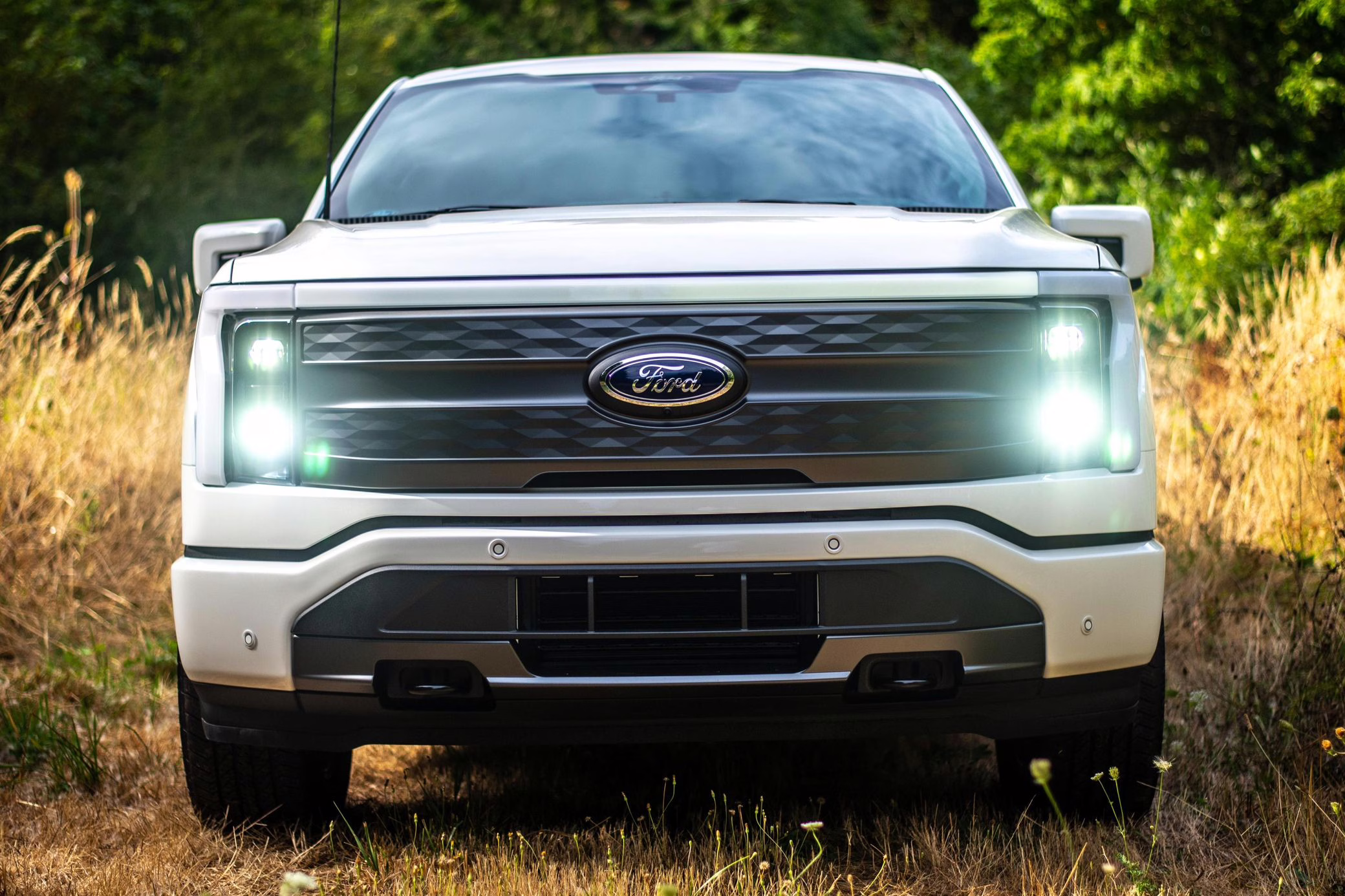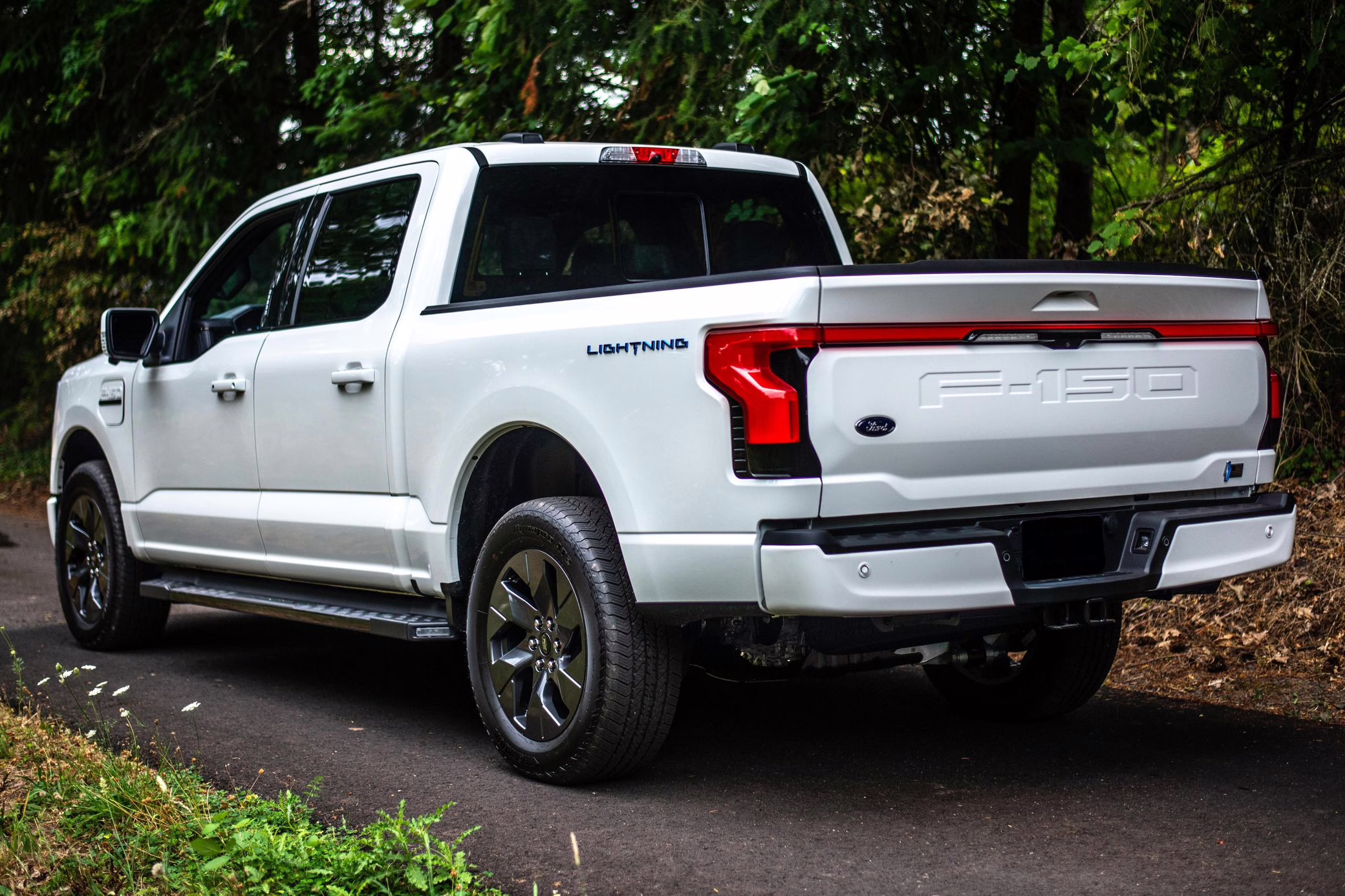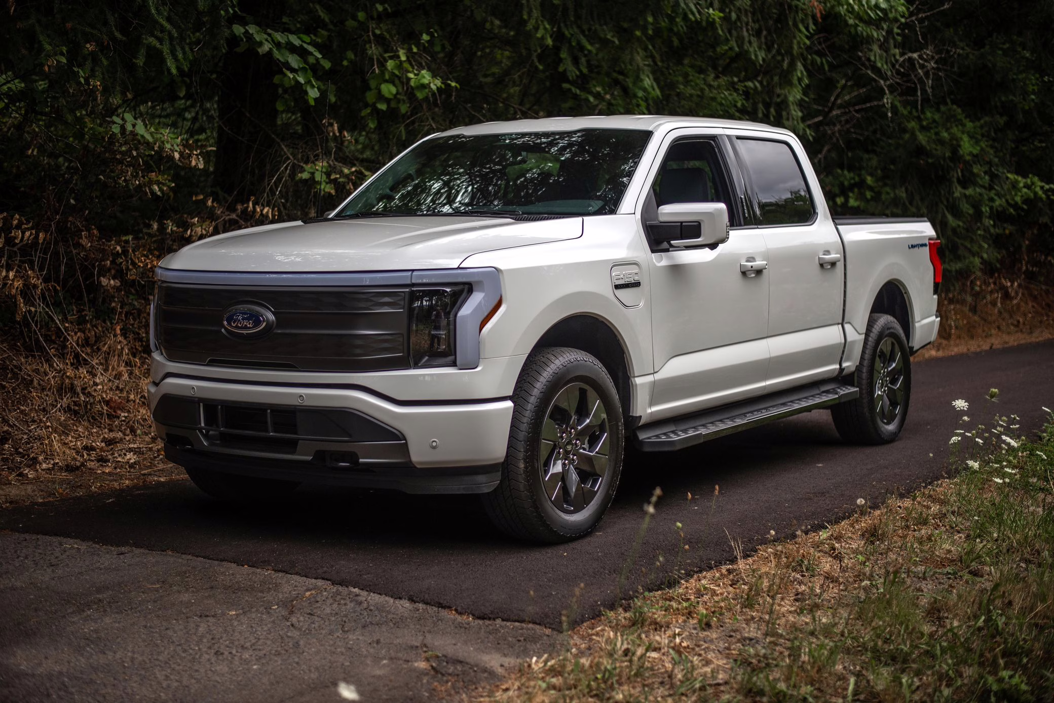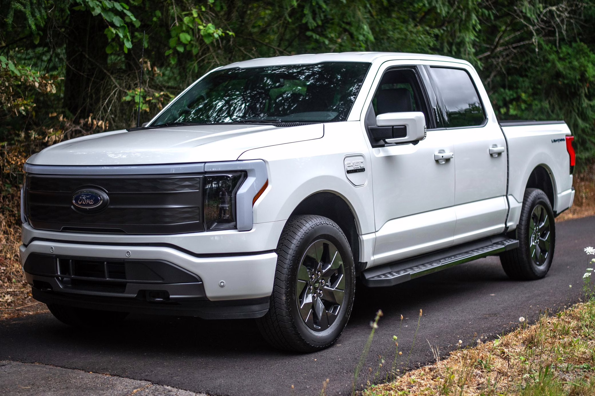 2022 Ford F-150 Lightning Lariat, finished in Star White Metallic with a black interior.