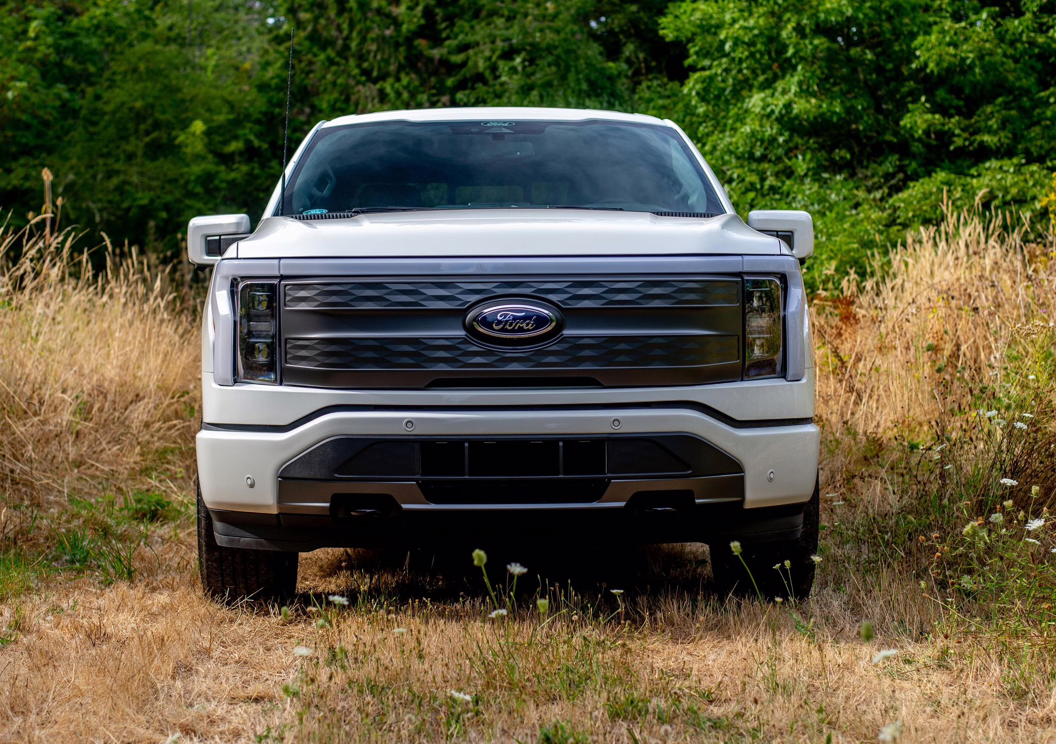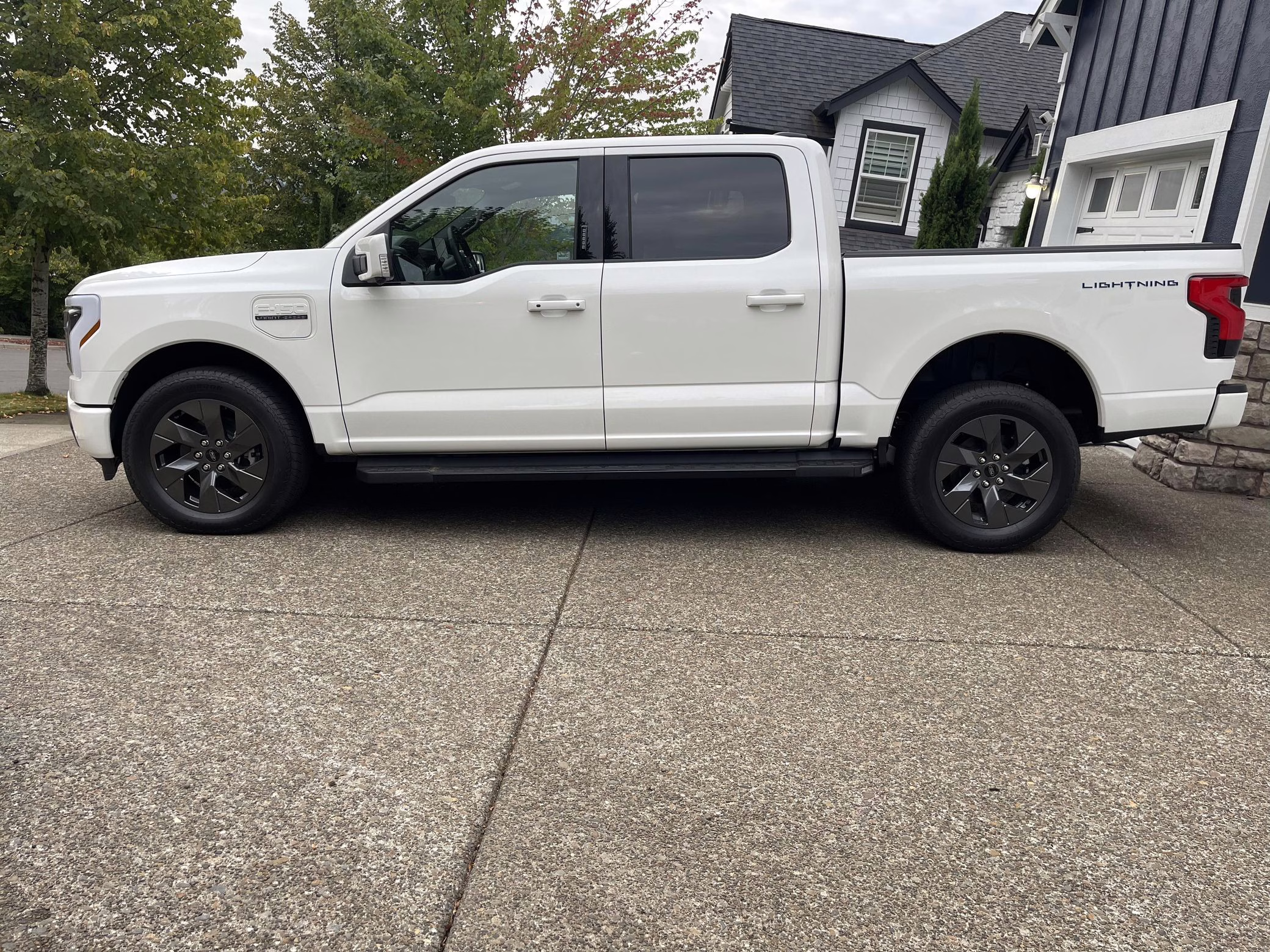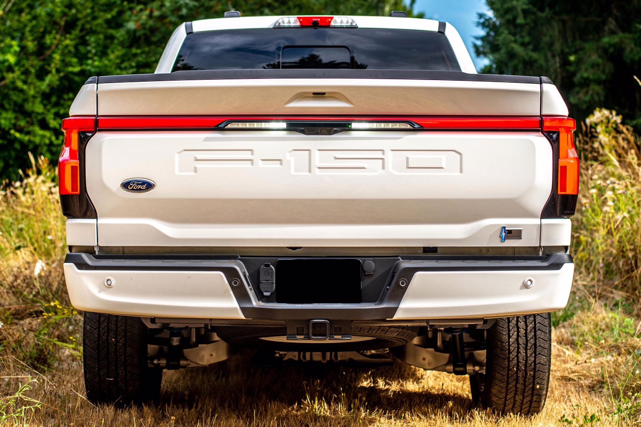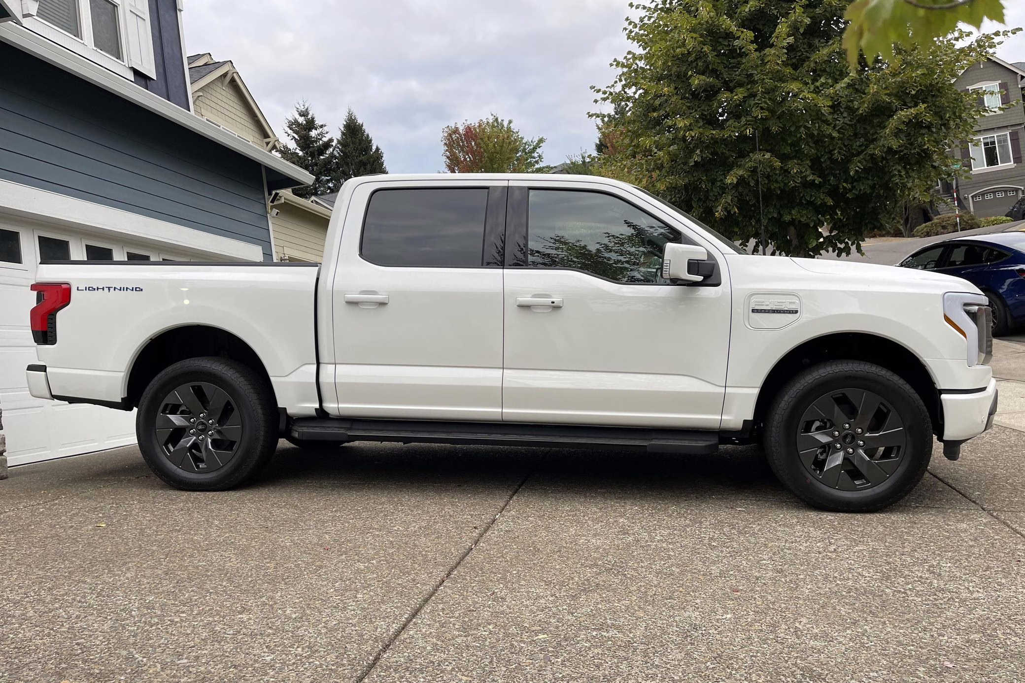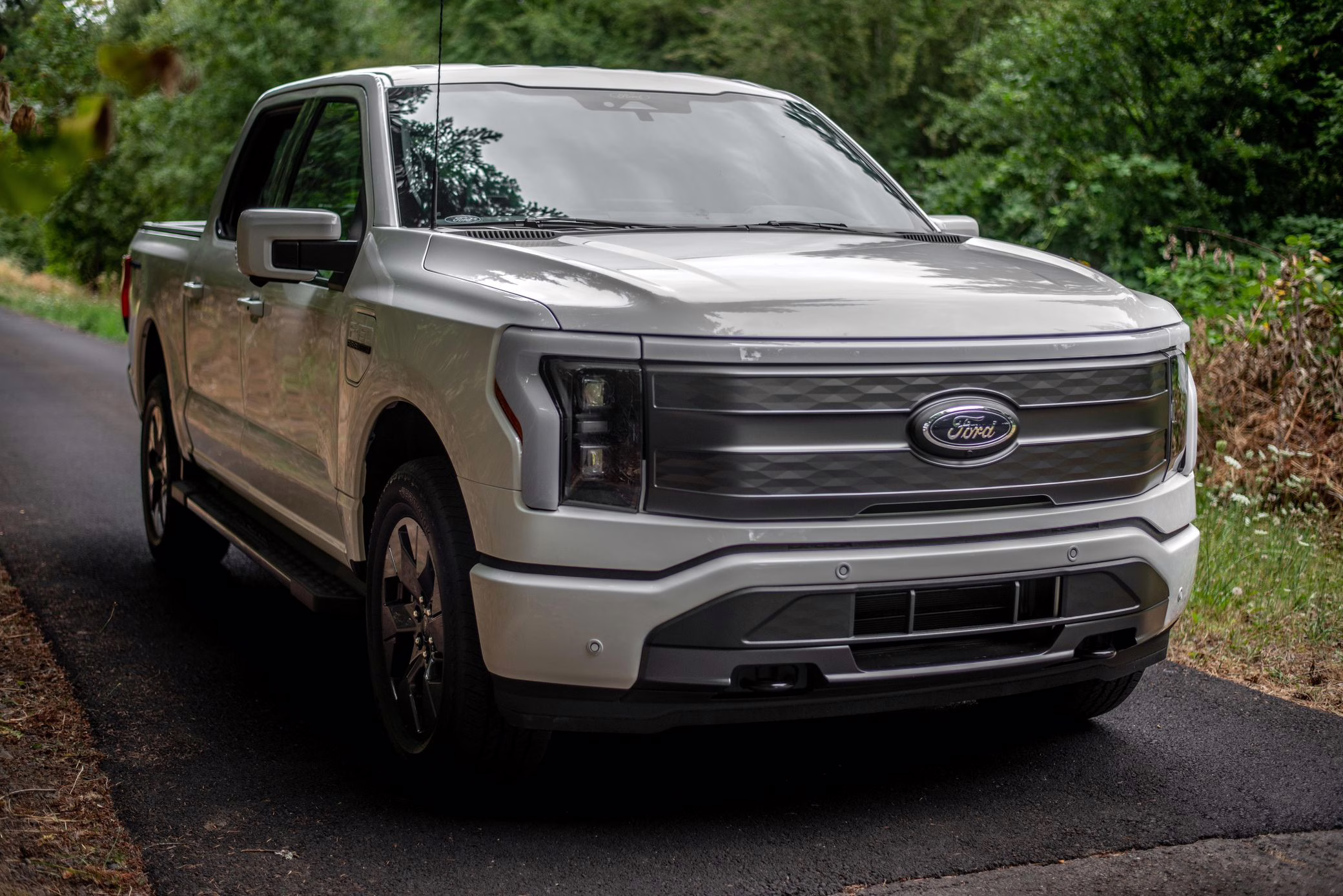 2022 Ford F-150 Lightning Lariat, finished in Star White Metallic with a black interior.