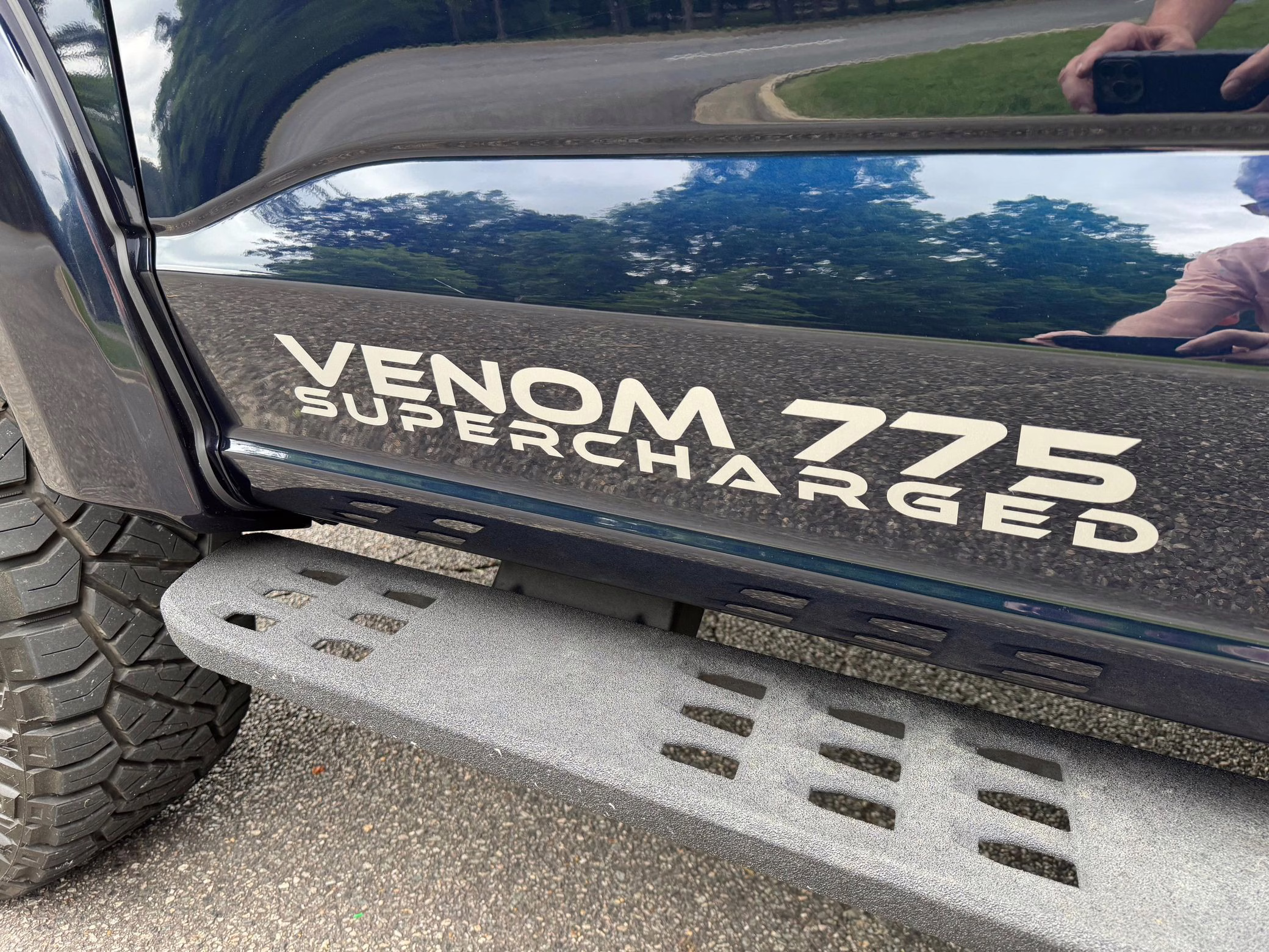 Notable modifications reported by the selling dealer include the Hennessey 775 package, 20-inch Hennessey wheels, a 6-inch BDS lift kit, FOX Racing remote reservoir shocks, a Brembo front big brake kit, and more as detailed below.