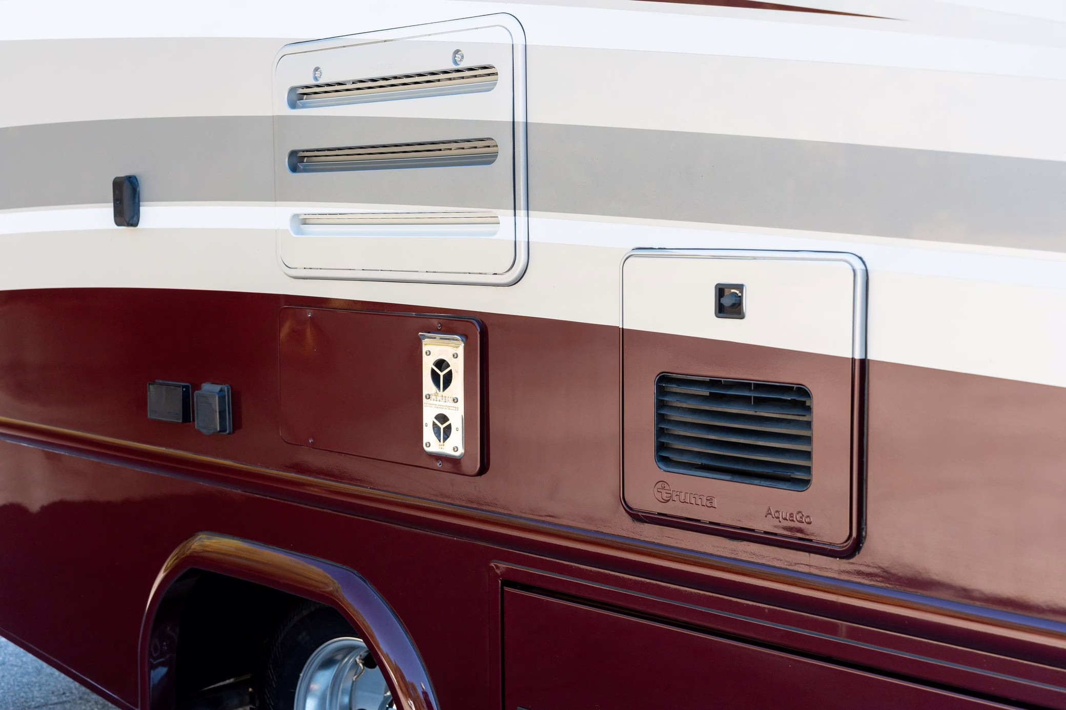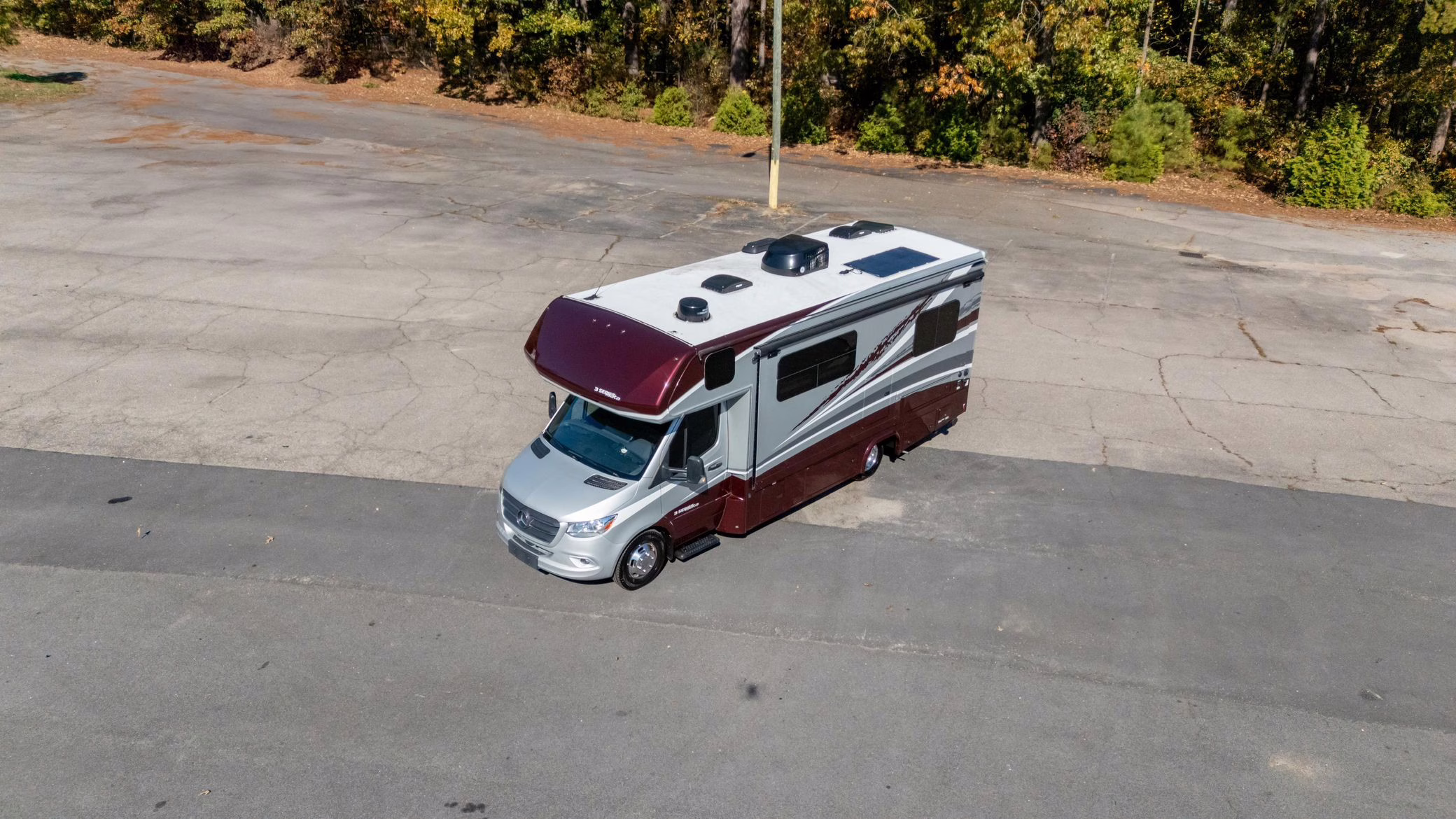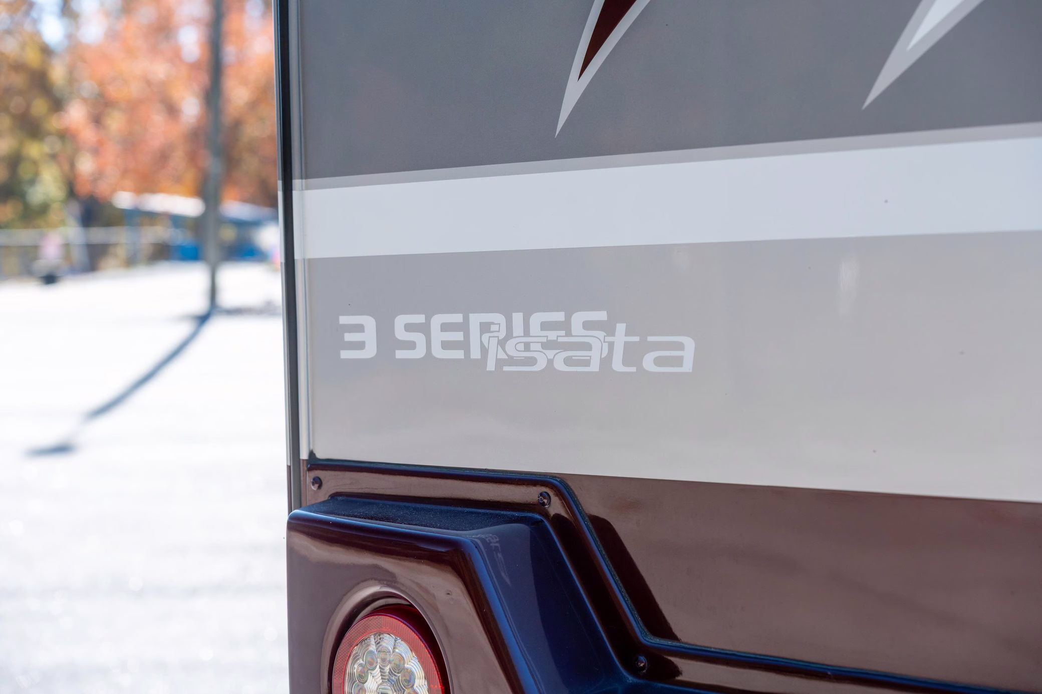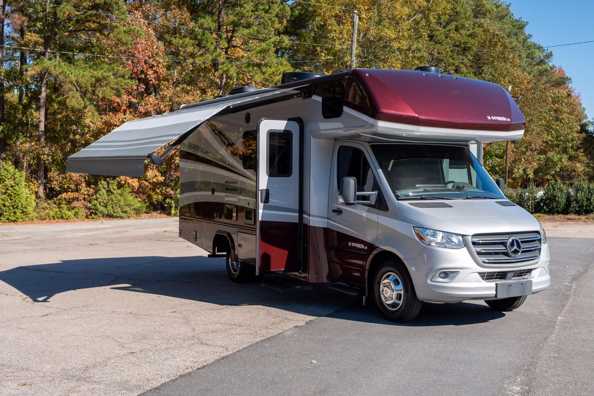 2023 Mercedes-Benz Sprinter 3500XD Isata 3 Series, finished in silver and burgundy with a black interior.