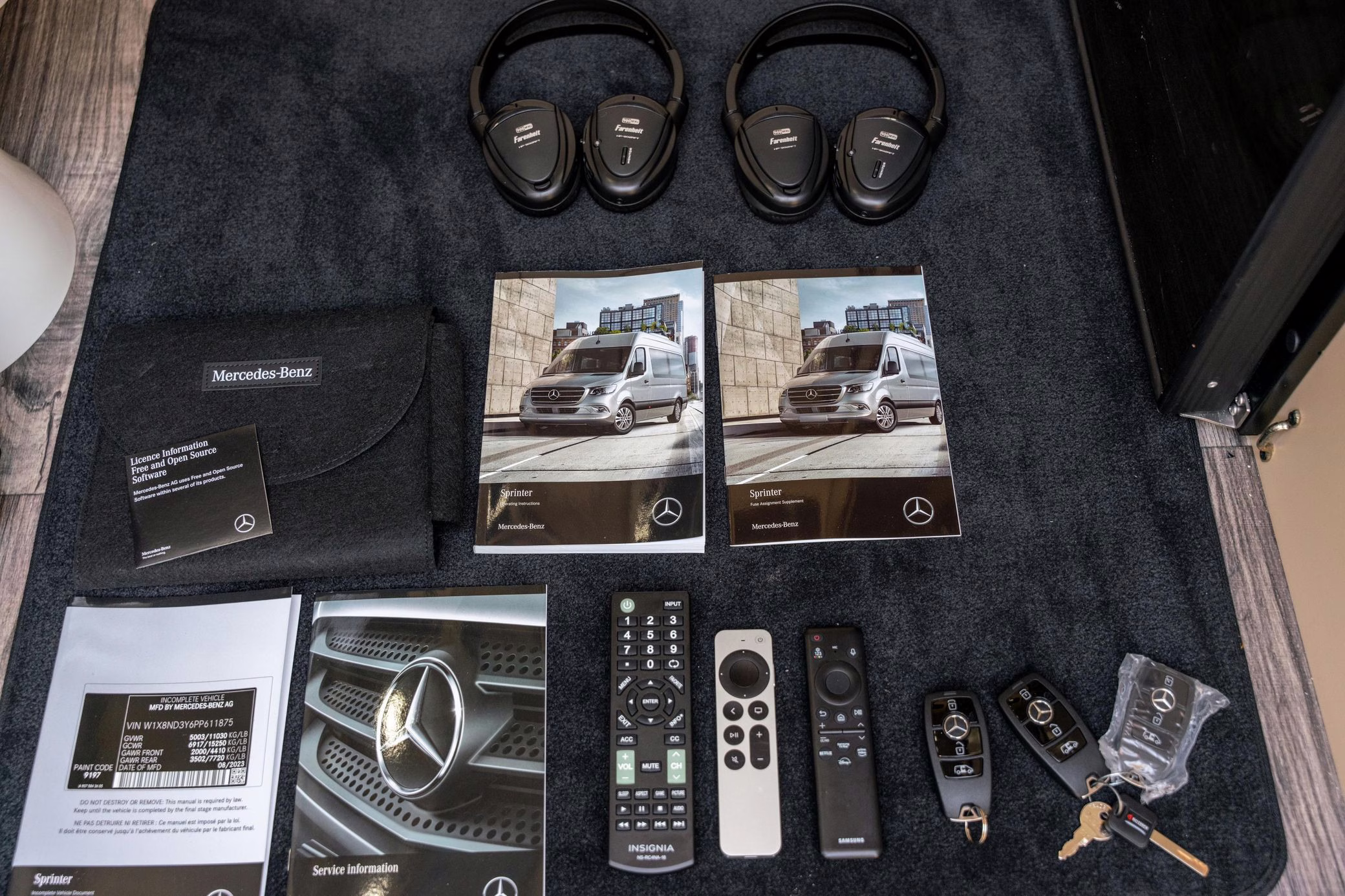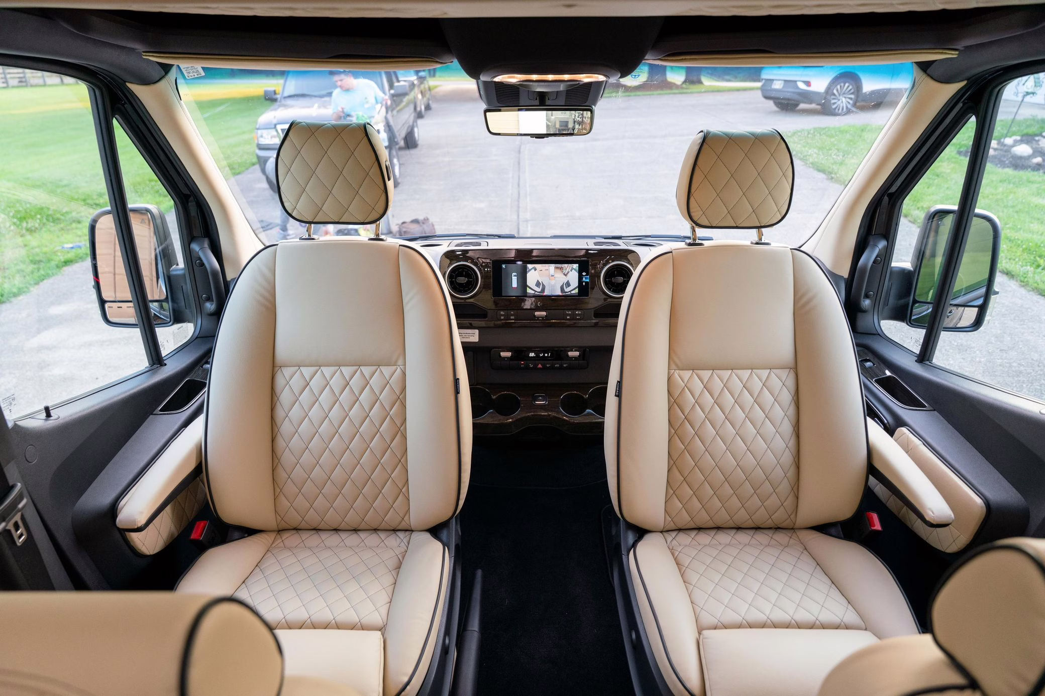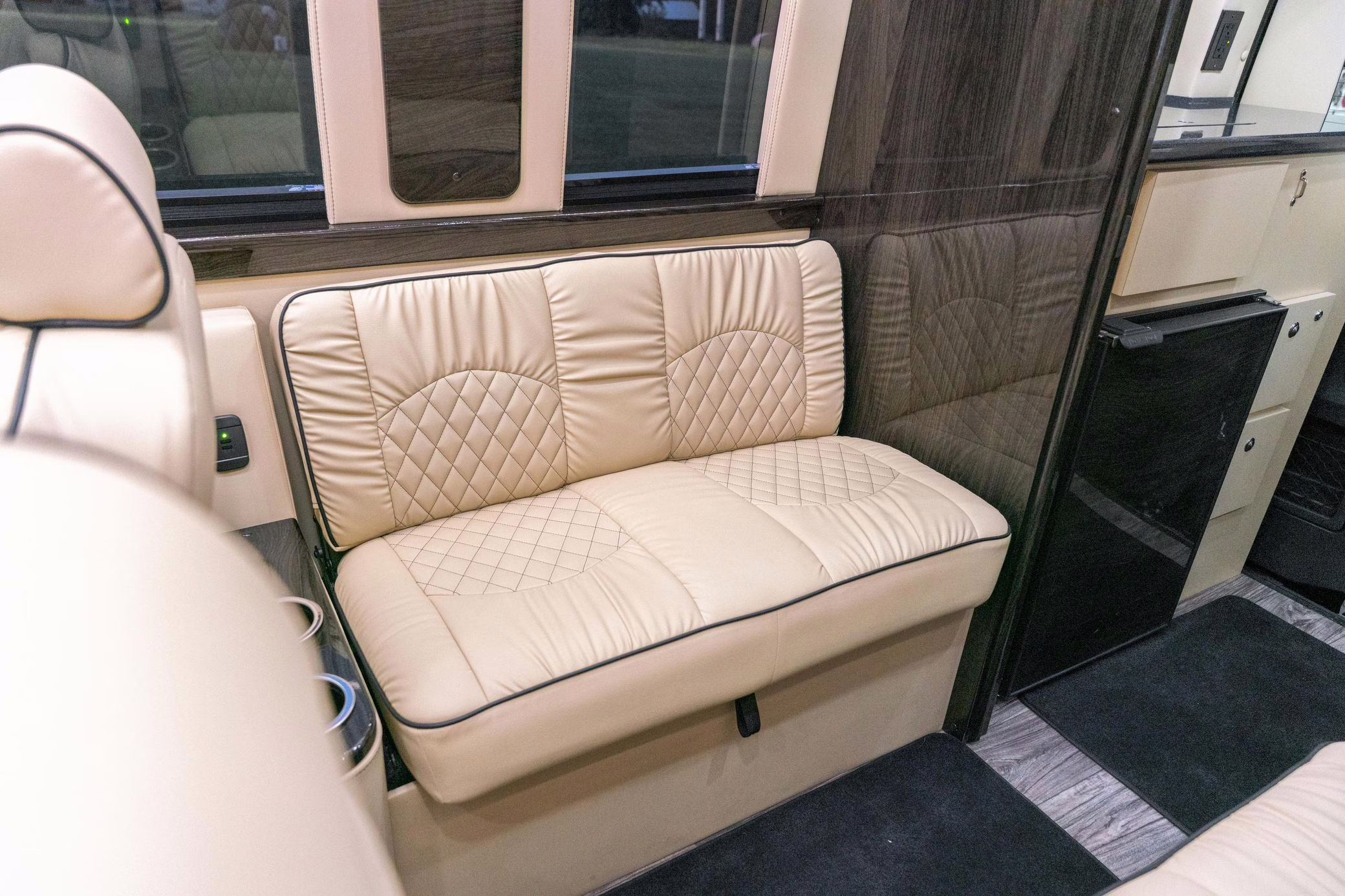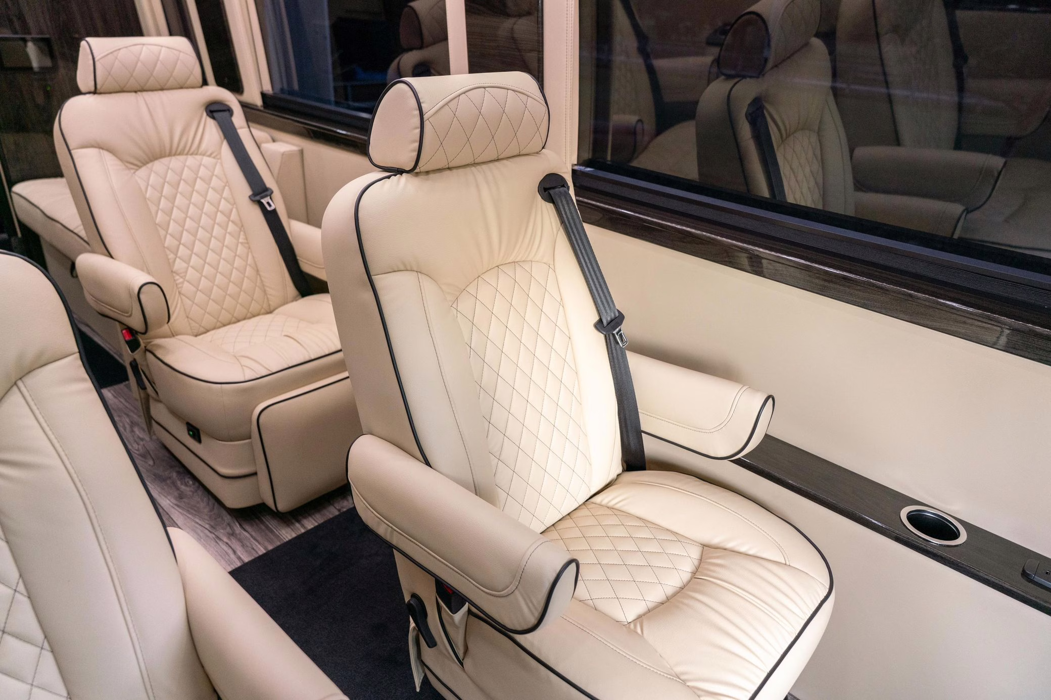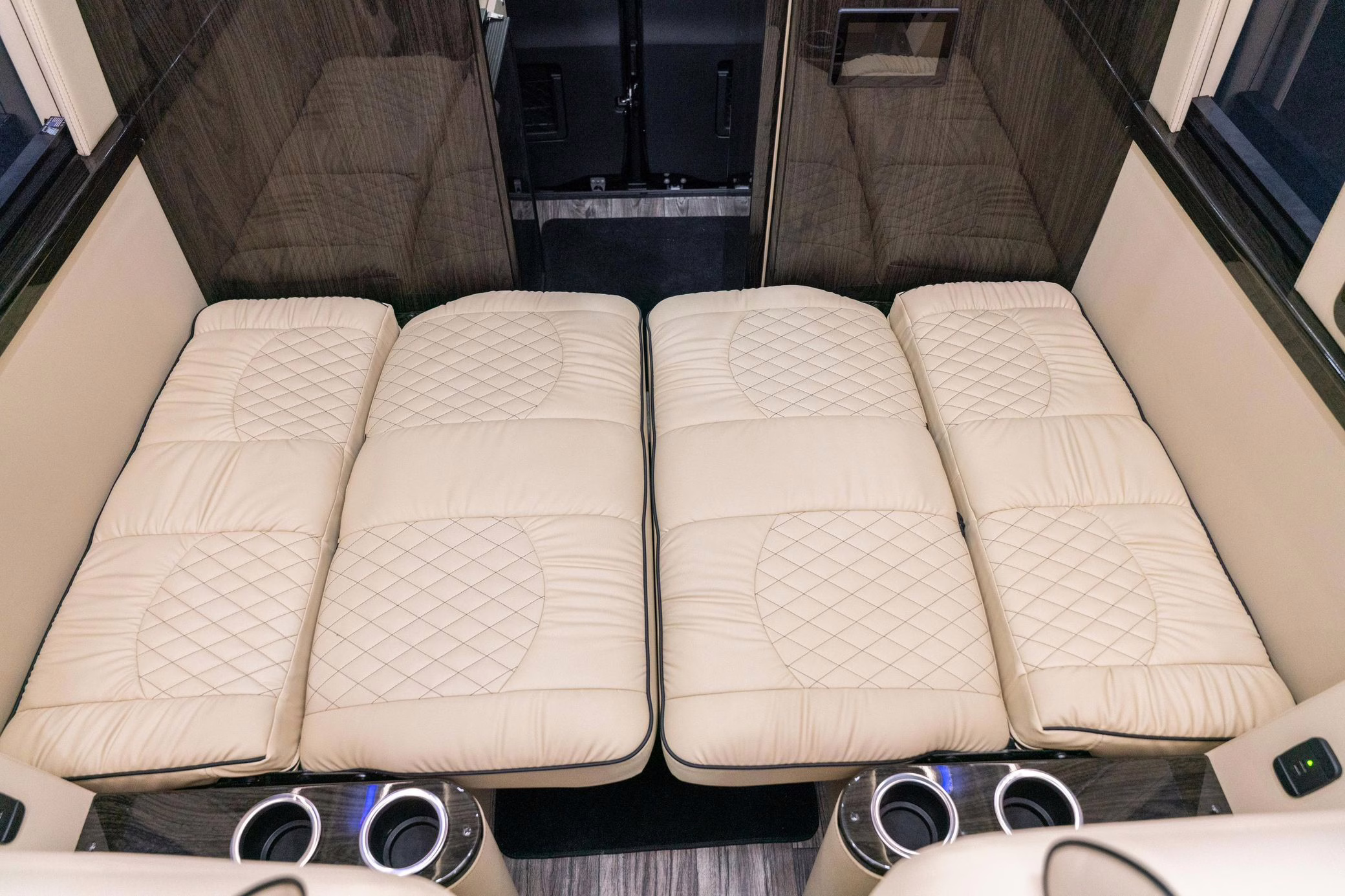 Built on a 2023 chassis, this Sprinter received a luxury van conversion by Ultimate Toys and was designed by Midwest Automotive Design. Notable modifications reported by the seller include adjustable captain’s chairs, a convertible sofa bed, two HDTVs, lap tables, a kitchen, Wi-Fi connectivity, smart controls, and a rear bathroom, among others detailed below.