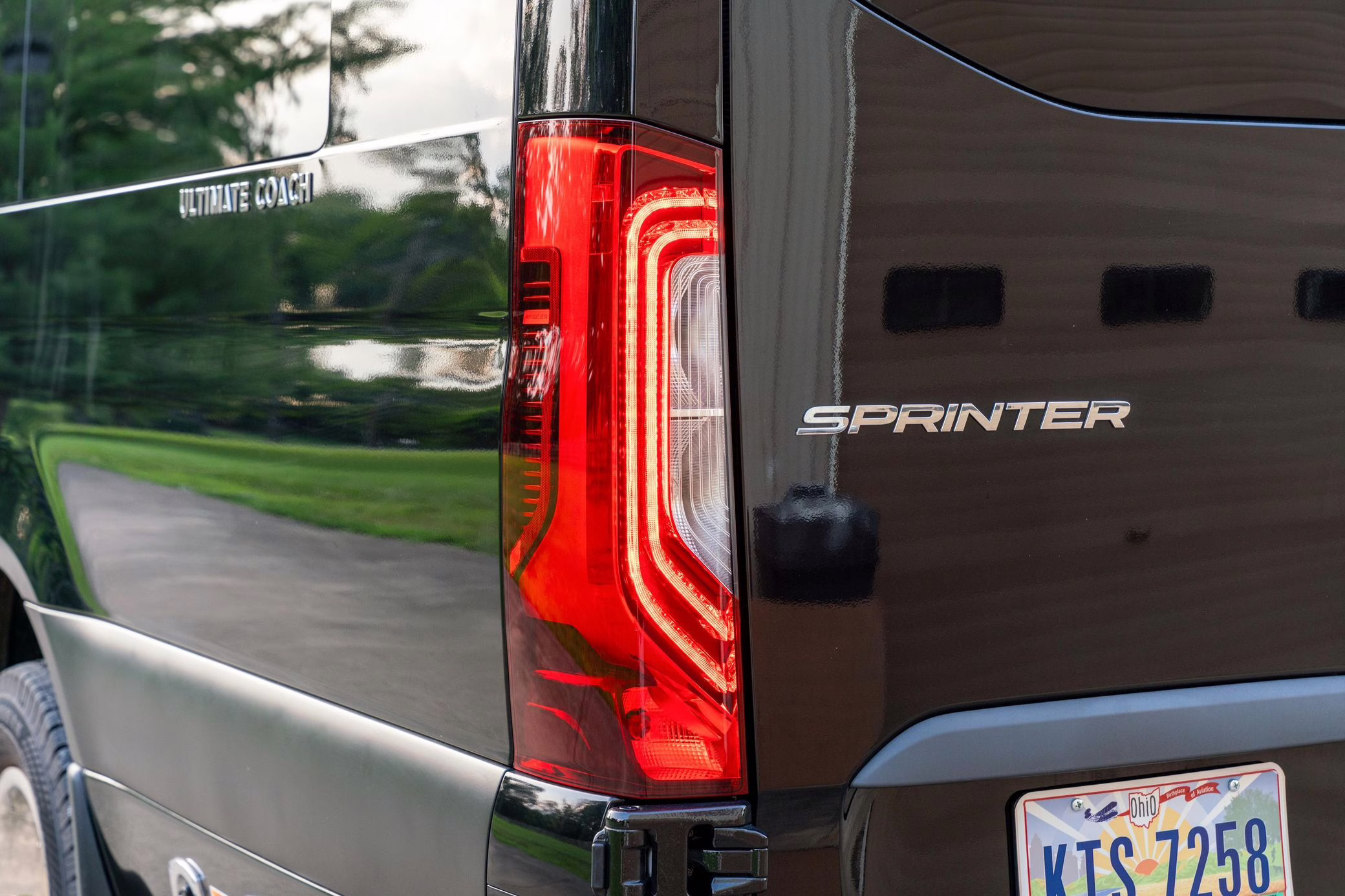 2023 Mercedes-Benz Sprinter 3500XD Ultimate Toys Coach, finished in Obsidian Black Metallic with a beige interior.